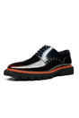 The Velourde Ostranuxe Exquisitique Brogues feature a solid pattern with a pointed toe design, crafted from genuine cow leather with a pigskin leather lining, and are equipped with a durable rubber outsole and a lace-up closure.