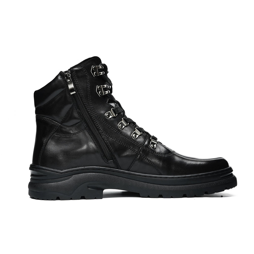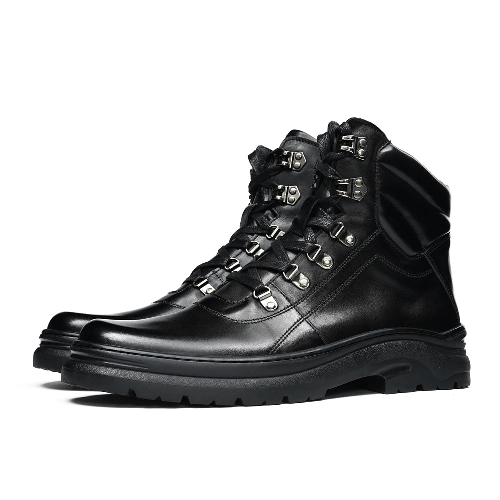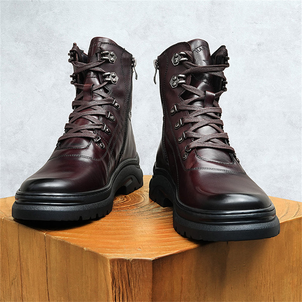 The Veltique Motorcycle Boots feature a cow leather upper and a pigskin or fur lining, offering both durability and comfort. These ankle-height boots have a convenient laces closure and a 1.77-inch heel, complemented by a stylish round toe design.