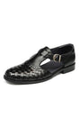 The Eldorian Chic Buckle Leather Sandals feature a genuine leather upper made from first layer cow leather, a first layer pigskin lining, and a full grain leather insole, all designed for comfort and durability. These sandals have a round toe shape, a secure buckle closure, and a rubber outsole for reliable traction.