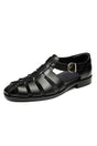 The Exoticade Chic Buckle Leather Sandals feature a genuine leather upper made from first layer cow leather, a first layer pigskin lining, and a full grain leather insole, all designed for comfort and durability. These sandals have a round toe shape, a secure buckle closure, and a rubber outsole for reliable traction. The heel height is approximately 0.8 inches, providing a subtle lift.