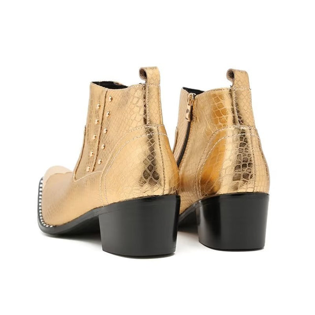 The Diamoré Wedding Luxe Boots are crafted from genuine cow leather with a genuine pigskin leather lining, featuring an ankle-height design and a convenient zipper closure.
