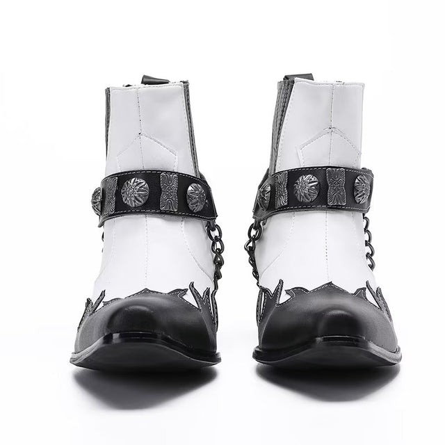 The Auburnyx Opulent Dress Boots feature an ankle-height design crafted from genuine cow leather, with a lining made of genuine pigskin leather, and a convenient zipper closure.