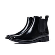 The Serpatura Elegant Glide Footwear dress boots are crafted from genuine cow leather, featuring an ankle-height design with a convenient slip-on closure and a distinctive square toe. The boots have a heel height of approximately 1.18 inches.