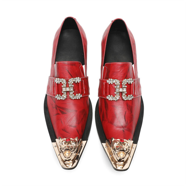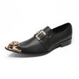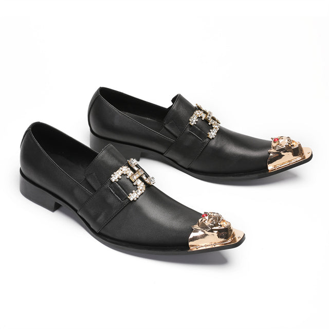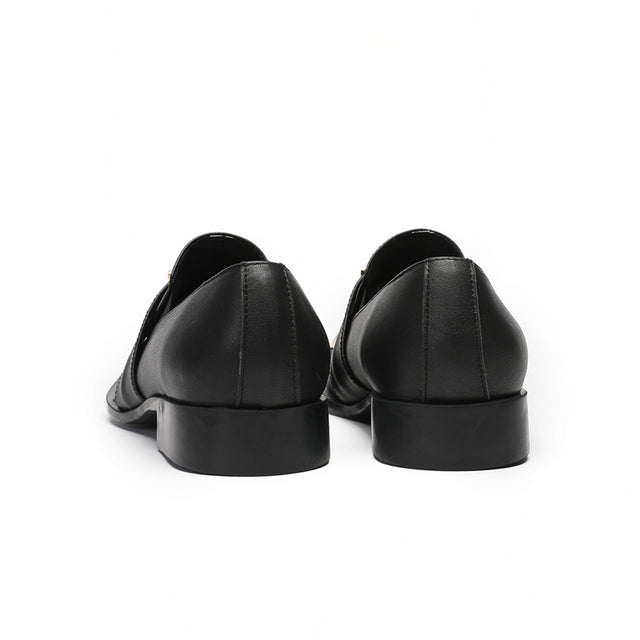 The Royvane Luxalon Signature Loafers feature a genuine leather construction with a cow leather upper and pigskin lining, a square toe design, and a convenient slip-on closure.