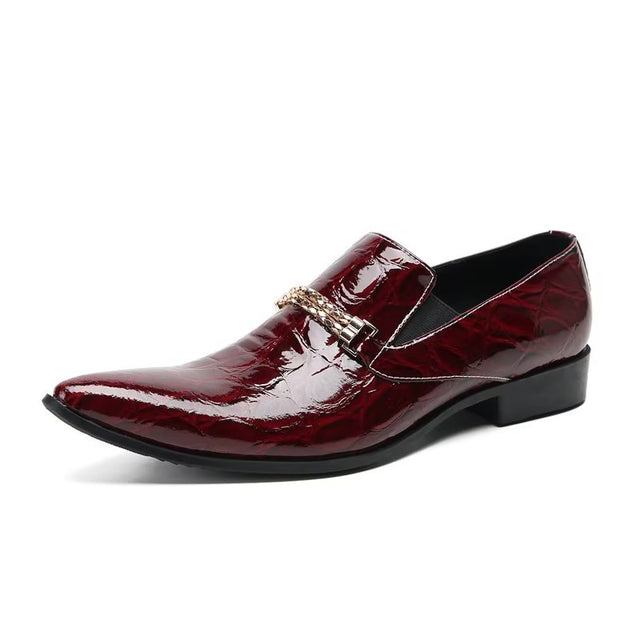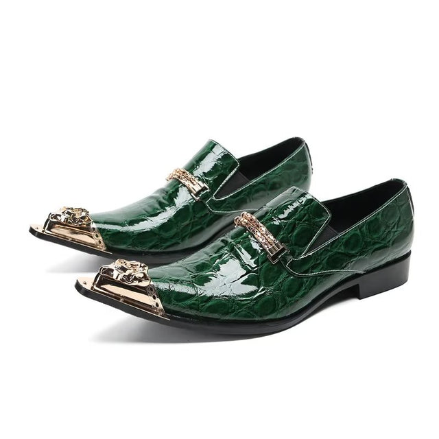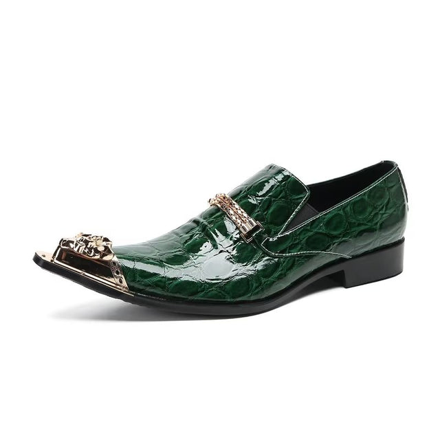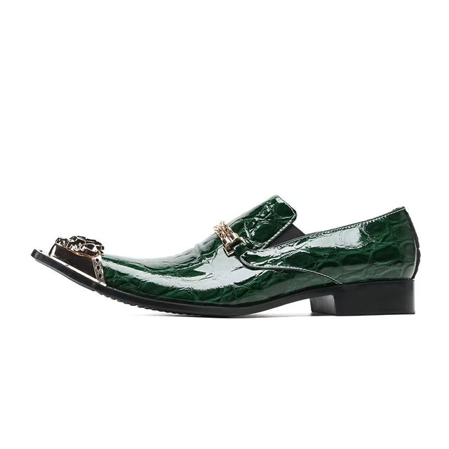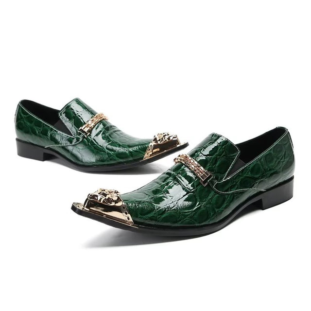 The Opulessa Chromura Dress Loafers feature a genuine cow leather upper and pigskin lining, with a slip-on closure and a pointed toe design, offering both style and comfort.