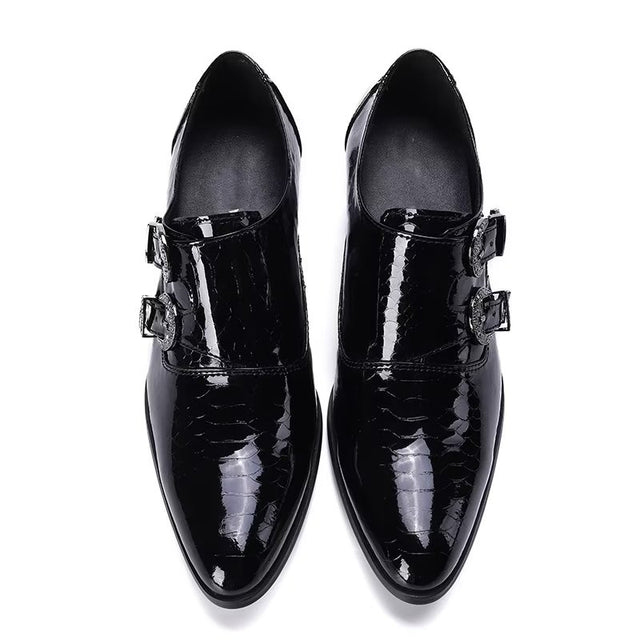 The Monastic Elegance Slip-On Shoes feature a genuine leather construction with a cow leather upper and pigskin lining, a slip-on closure for easy wear, and a pointed toe design for a sleek appearance.