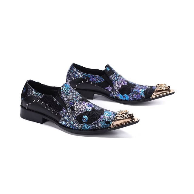 The Goldara Signature Slip Loafers feature an upper made of genuine cow leather and a lining of genuine pigskin leather, with a slip-on closure and a pointed toe design.