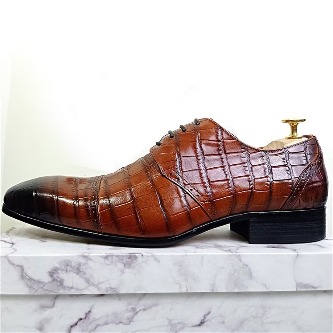 The Ostranuxe Elegant Lace-Up Footwear are genuine leather Oxfords featuring a solid pattern and a pointed toe design, ideal for autumn wear with a classic lace-up closure.