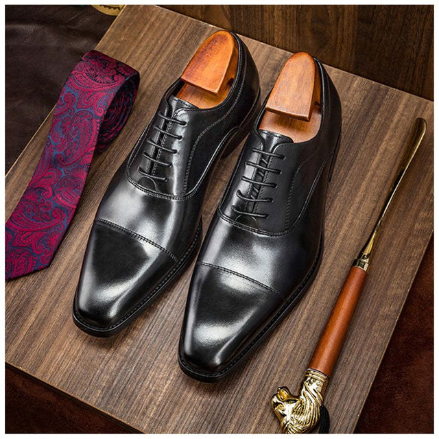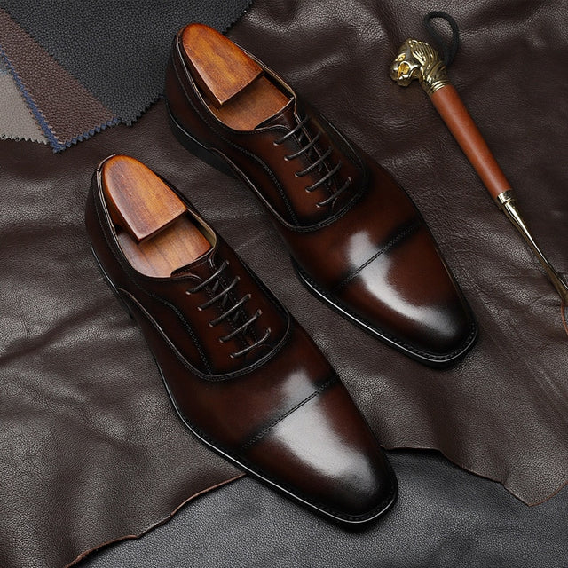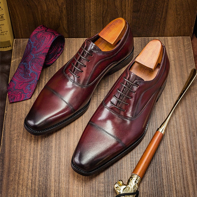 The Eldorian Veltique Oxfords are crafted from genuine leather with a solid pattern, featuring a lace-up closure and a pointed toe design, and they fit true to size.