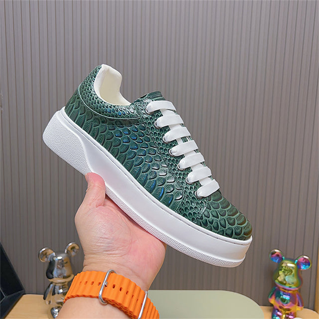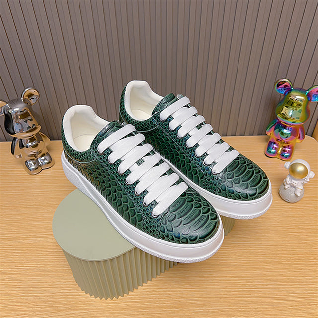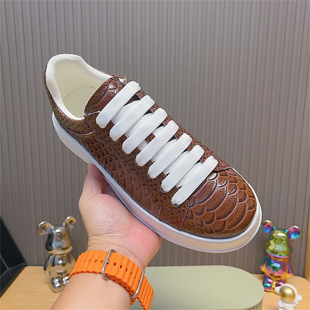 The Ostranuxe Business Croc-Sneakers feature a genuine cow leather upper and a durable rubber outsole, with a lace-up closure for a secure fit. The insole and lining are crafted from genuine pigskin leather, providing comfort and breathability, while the round toe design and metal decoration add a touch of sophistication.