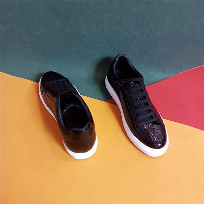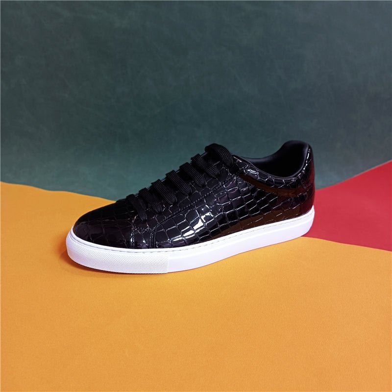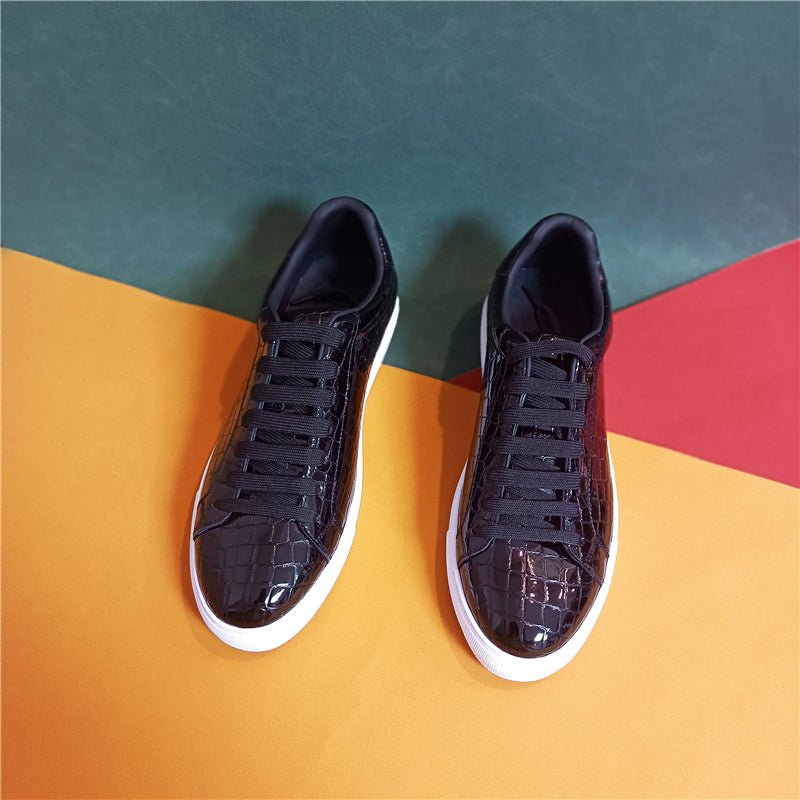 The Ostranuxe Business Croc-Sneakers feature a genuine cow leather upper and a durable rubber outsole, with a lace-up closure for a secure fit. The insole and lining are crafted from genuine pigskin leather, providing comfort and breathability, while the round toe design and metal decoration add a touch of sophistication.