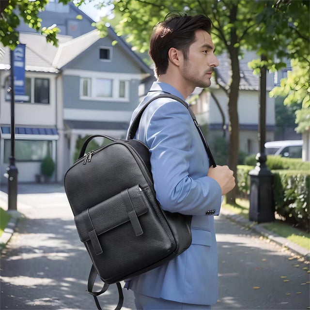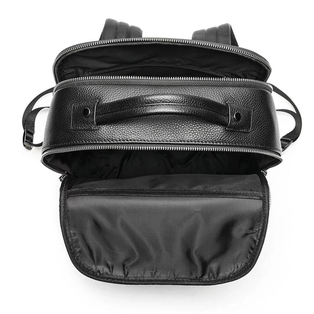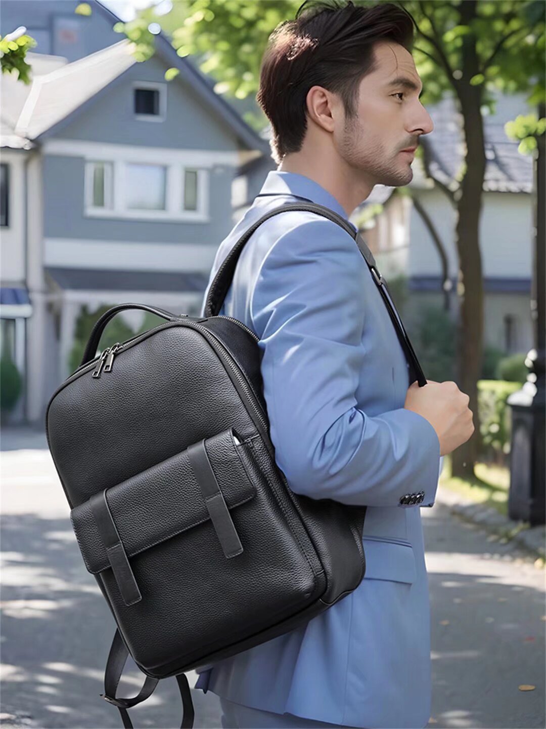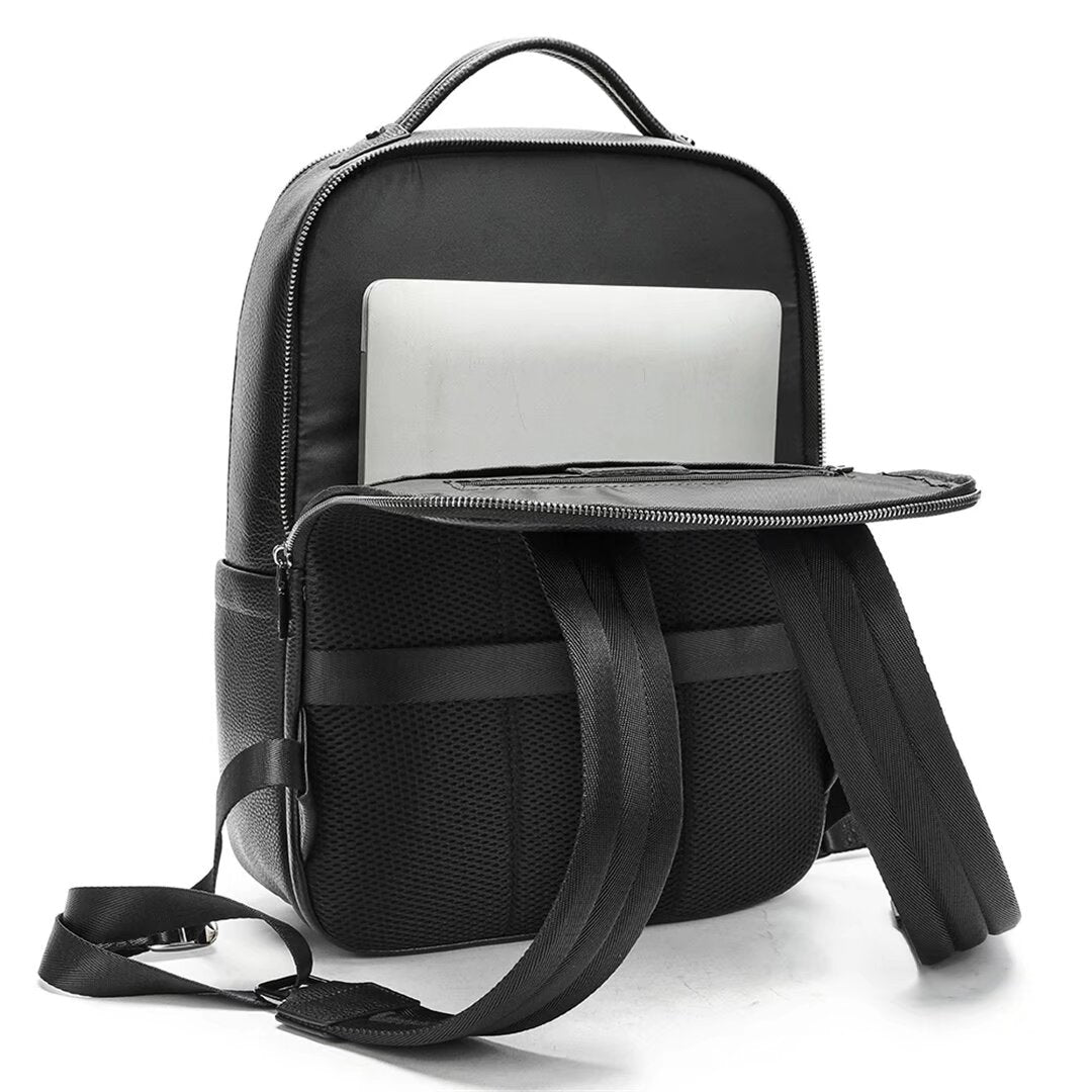 The Ostaranuxe Zipper Backpack is crafted from durable cow leather with an alligator pattern, featuring a secure zipper closure. Its casual tote shape includes practical interior features such as a slot pocket, cell phone pocket, zipper pocket, key chain holder, and compartment for organized storage.
