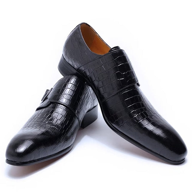 The Ostranuxe Effortless Monk Footwear features a slip-on closure with genuine cow leather as the main material, a PU insole for comfort, and genuine pigskin leather lining for durability.