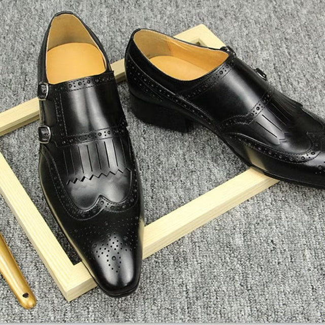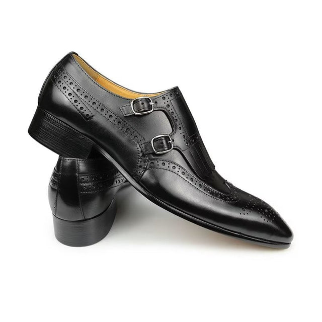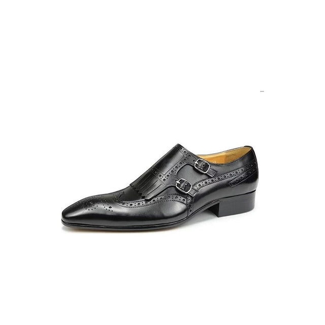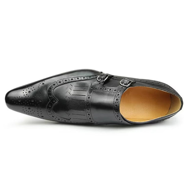 The Diamoré Deluxe Monk Footwear features a genuine cow leather upper, a PU lining, a pointed toe design, and a secure buckle closure.