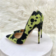 The Noirelle Veltique Slip Heels feature a microfiber upper with a pointed toe design and a super high heel height of over 3.15 inches. They are true to size with a slip-on closure, lined with PU, and have a durable rubber outsole.
