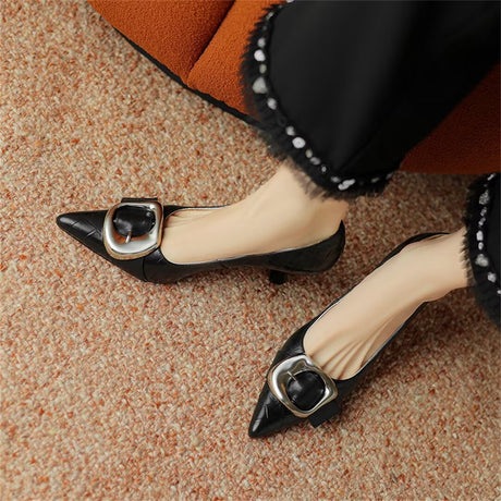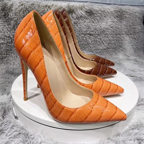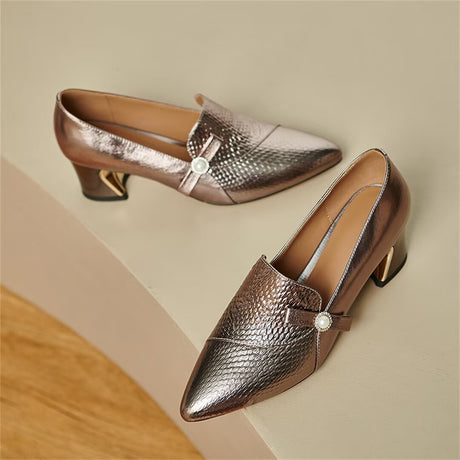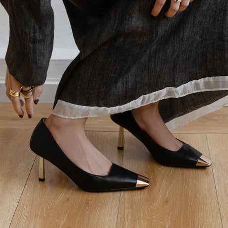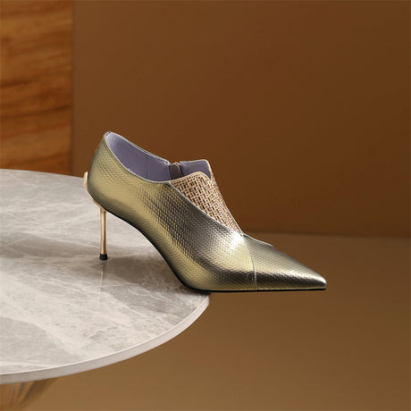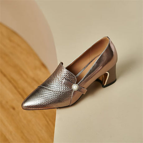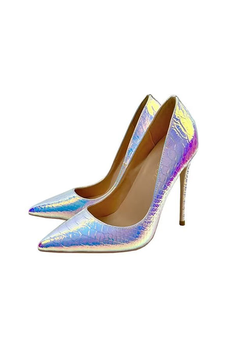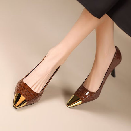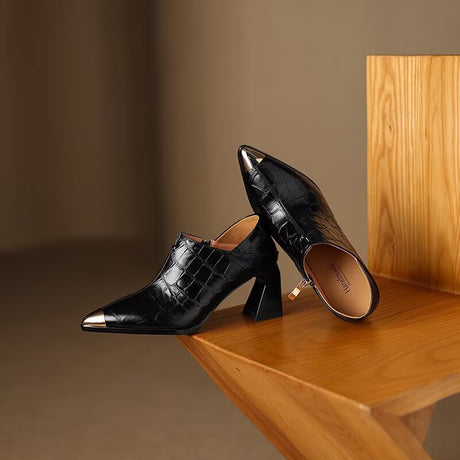 Exoticade CrocoGlam Square Toe Metal Pumps