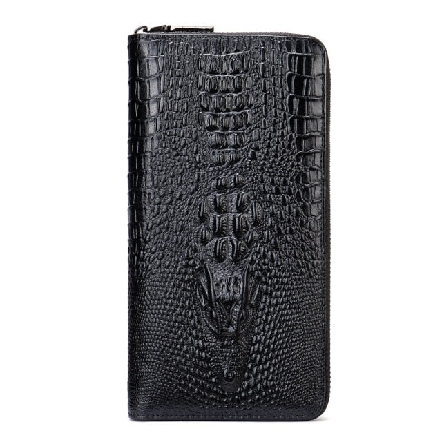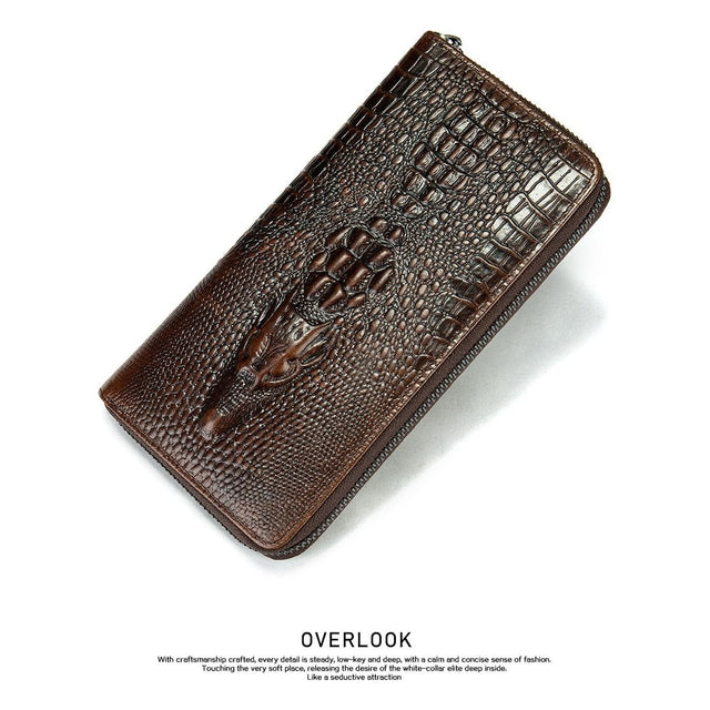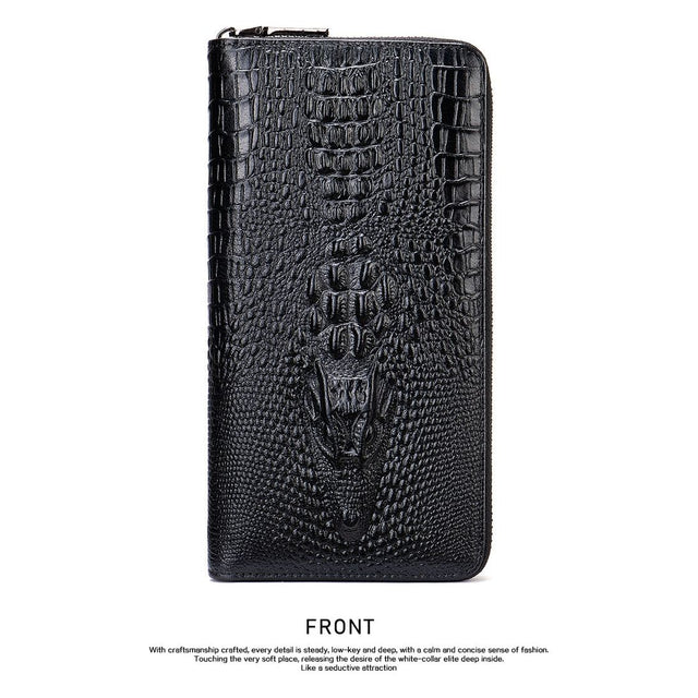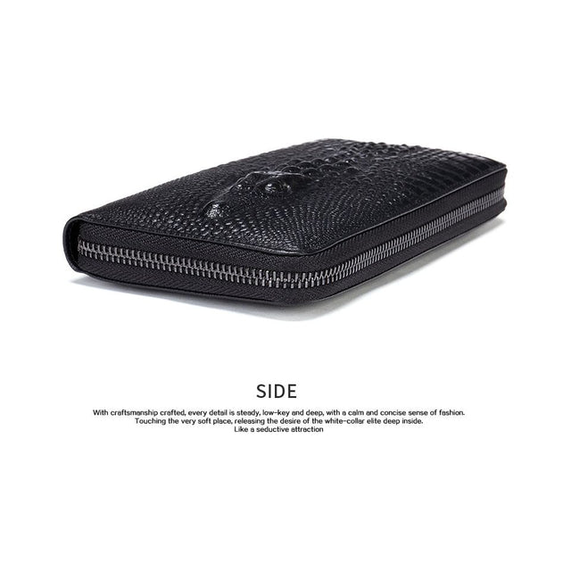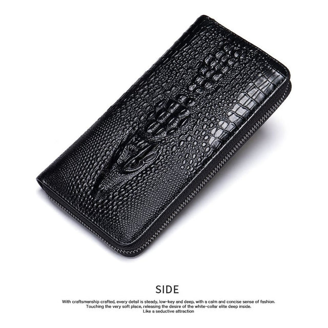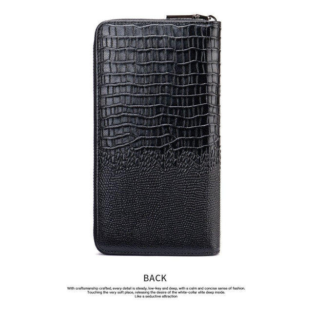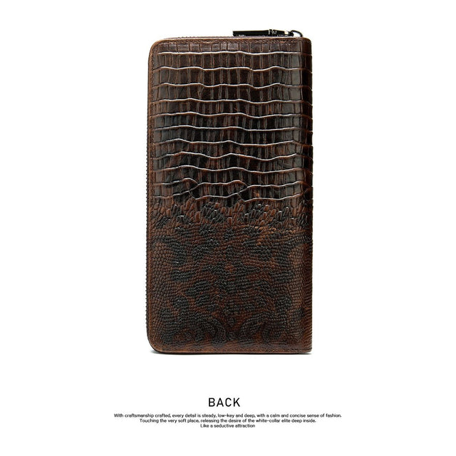 The Serpatura Elegant Luxe Fold wallet is crafted from genuine cow leather, featuring a stylish striped pattern and a secure zipper closure. It measures 4.13 inches in height and is designed in a long fashion style, making it both functional and fashionable.