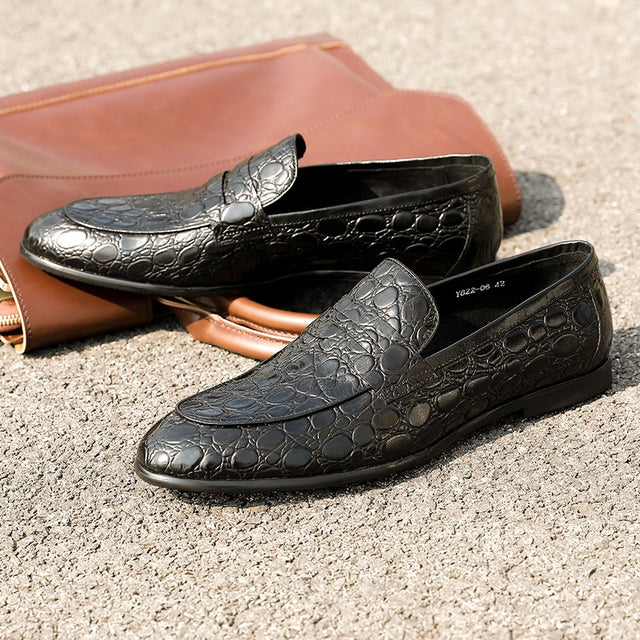 The Diamoré Event Croc Loafers are crafted from genuine cow leather with a rubber outsole, featuring a slip-on design that is both breathable and waterproof.