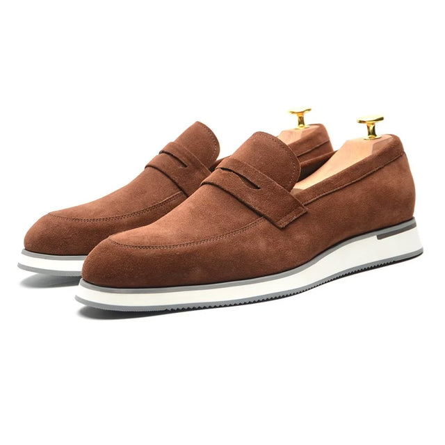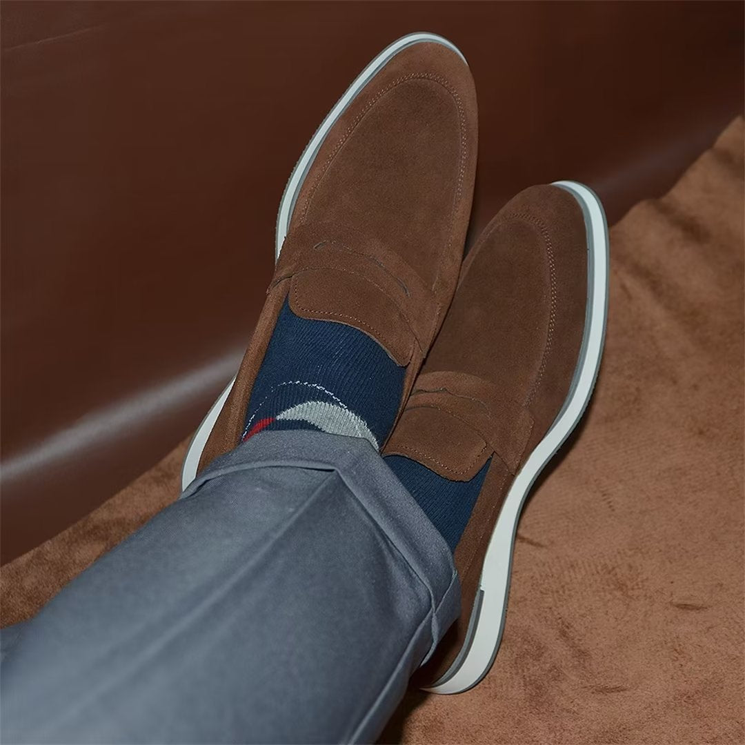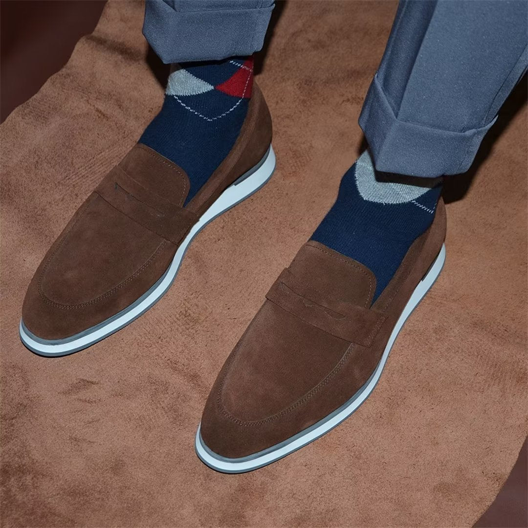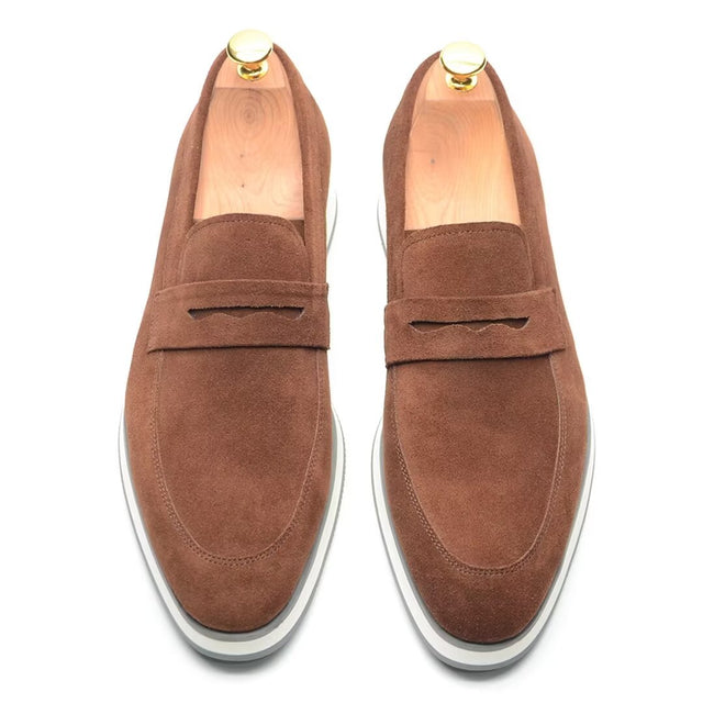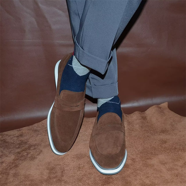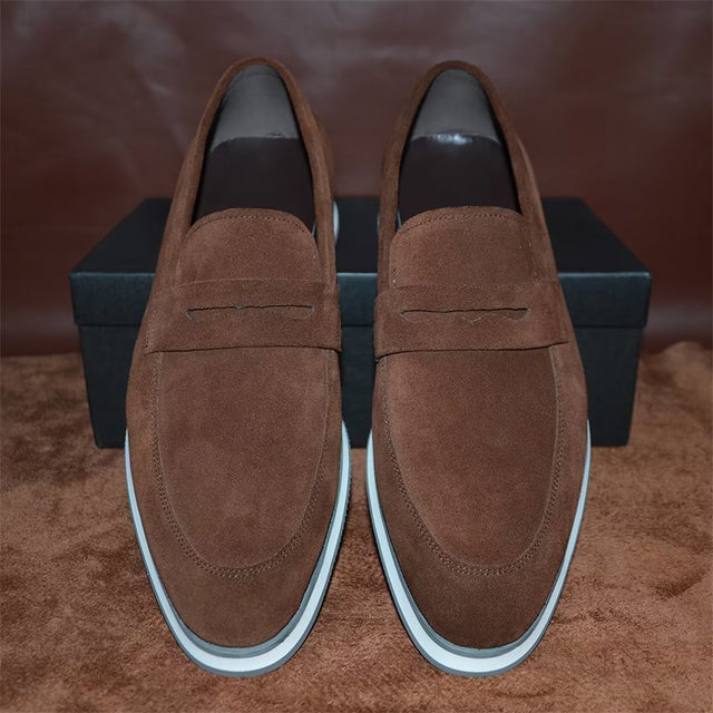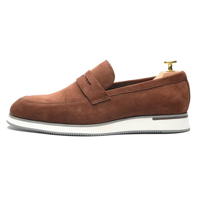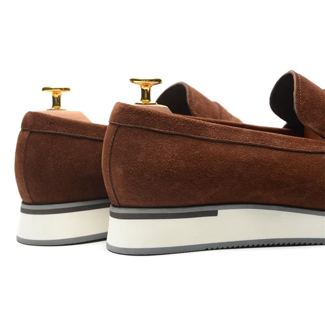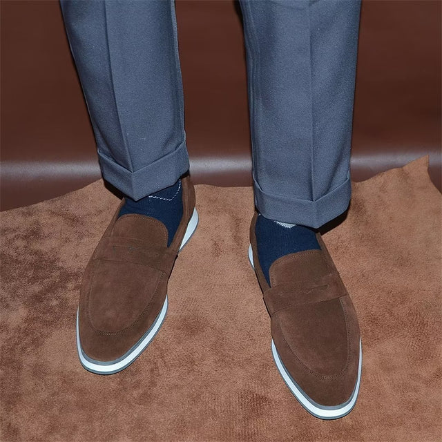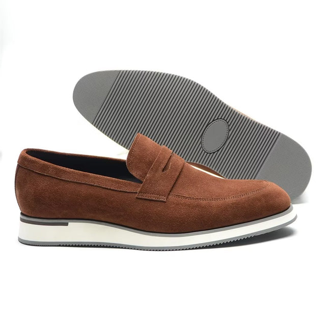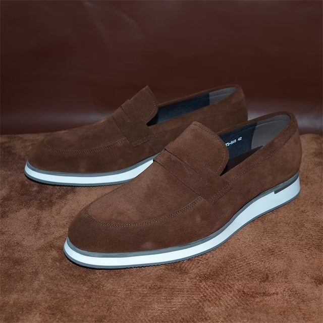 The Opulessa Velture Luxeform Loafers feature a genuine cow leather upper and a genuine pigskin lining and insole, providing a luxurious feel and durability. Designed with a solid pattern and a round toe shape, these loafers offer a classic look, while the rubber outsole ensures reliable traction. The slip-on closure type adds convenience and ease of wear.