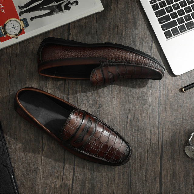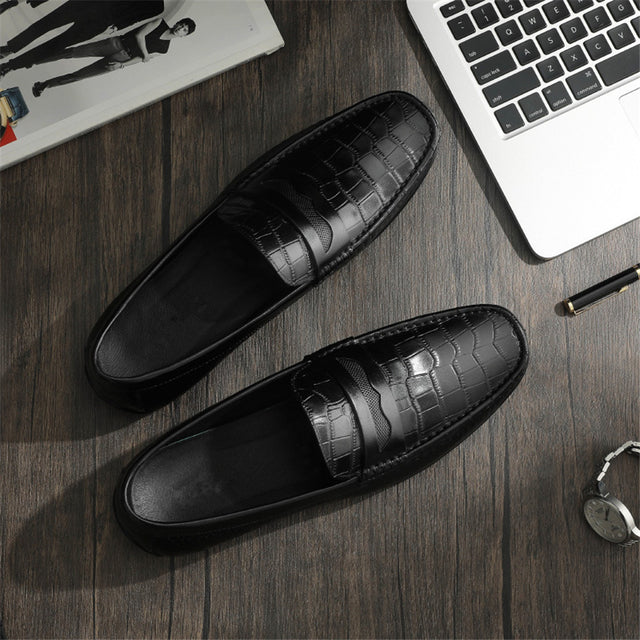 The Veltique Loafers feature a solid pattern with a slip-on closure, crafted from genuine cow leather for the upper and genuine pigskin leather for the lining, complemented by a full grain leather insole and a durable rubber outsole.
