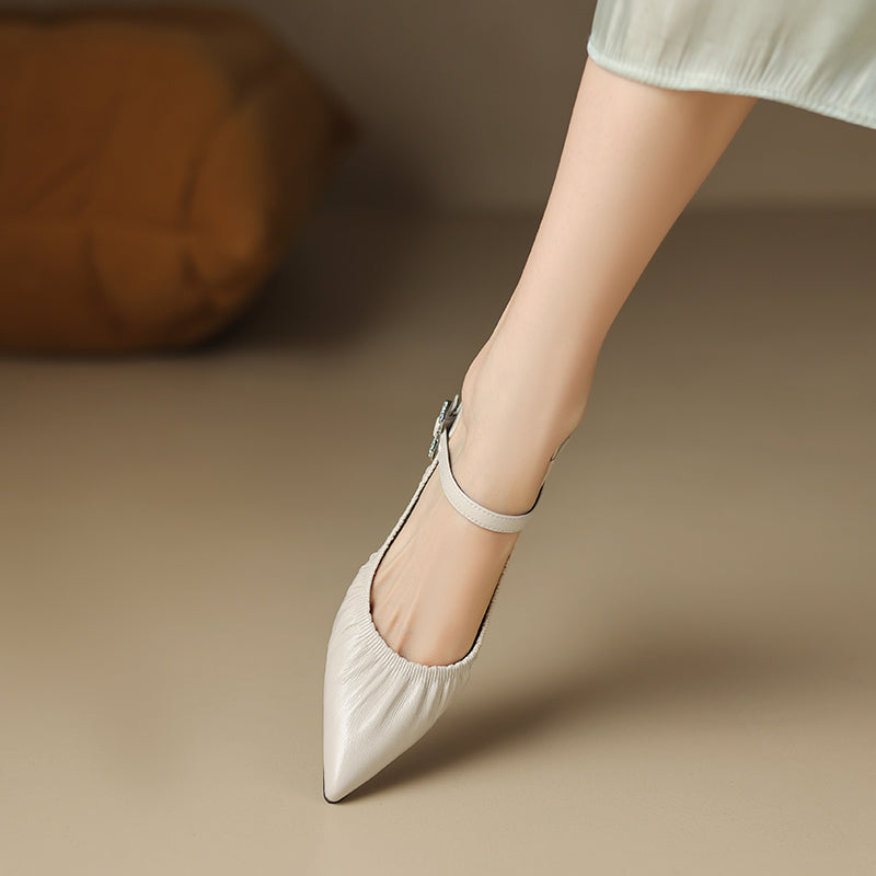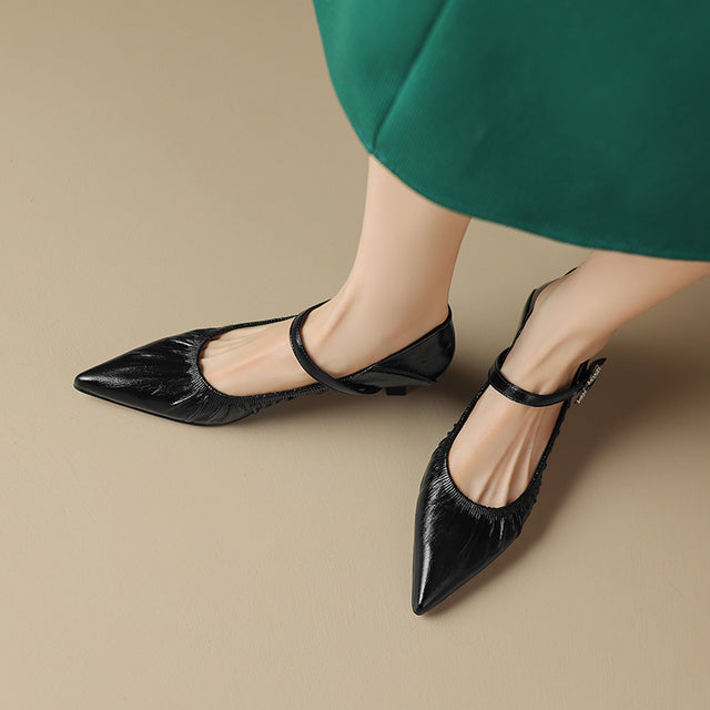 The Veltique Snakara Slip Heels feature a genuine cow leather upper with a solid pattern, a 1.6-inch square heel, and a slip-on closure, all designed in an elegant style with a pointed toe shape.
