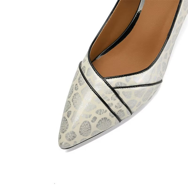 The Veltique Bridal Glide Heels feature a satin upper material with a delicate lace pattern, a secure buckle closure, and a 3.5-inch stiletto heel, designed to provide both elegance and stability for your special day.