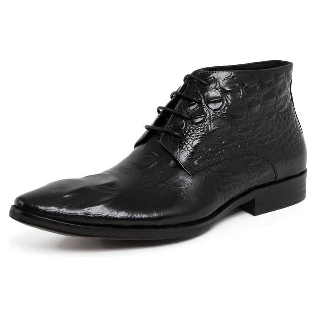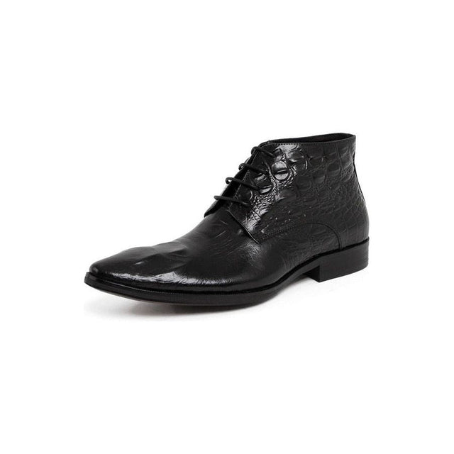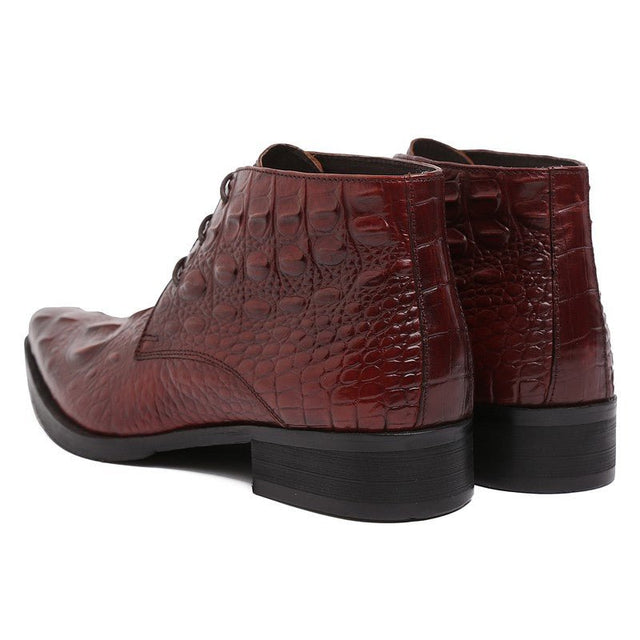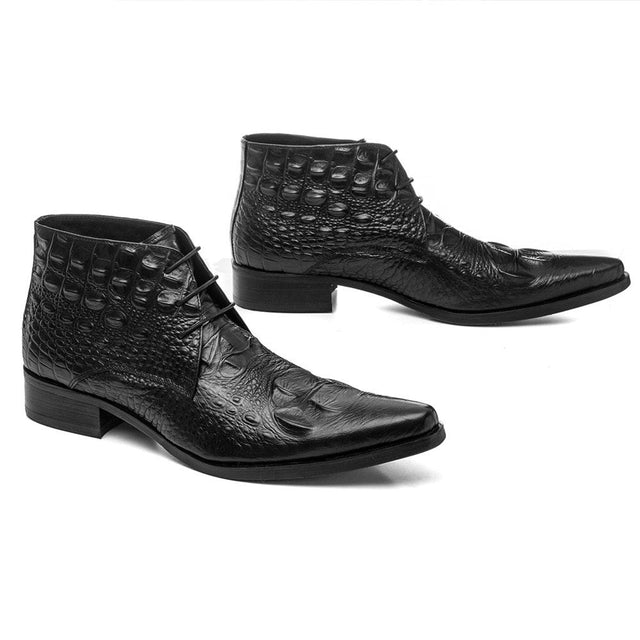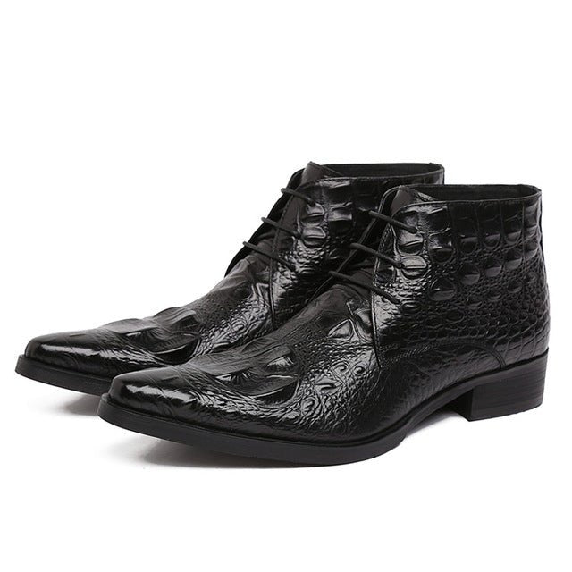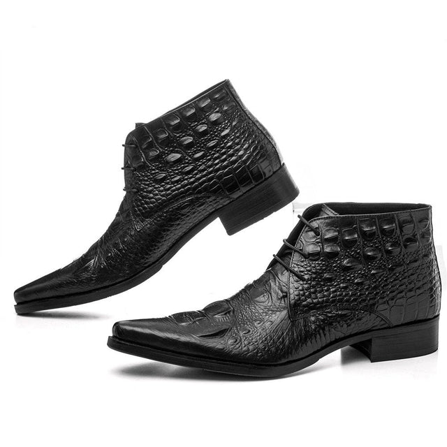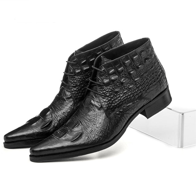 The Serpatura Luxe Dress Boots are crafted from genuine leather, featuring a pointed toe and a lace-up closure. They have an ankle-high design with a heel height ranging from 3/4 inch to 1.5 inches.