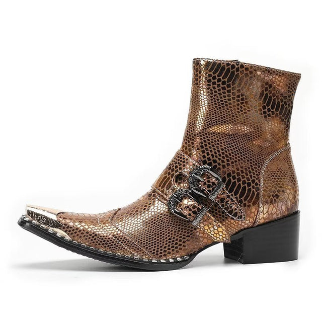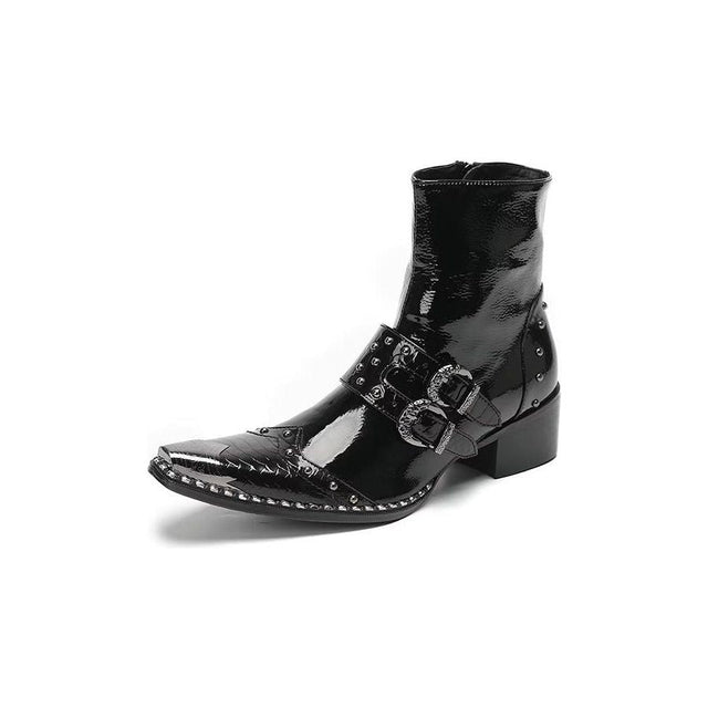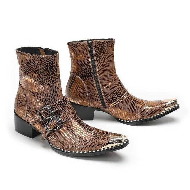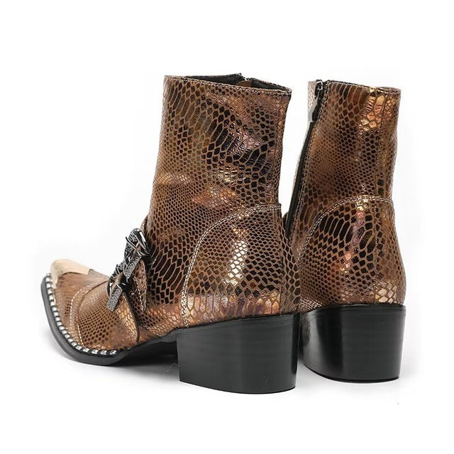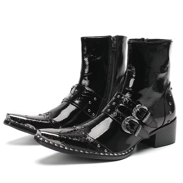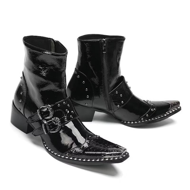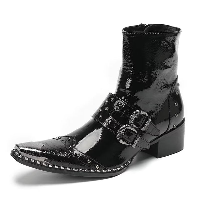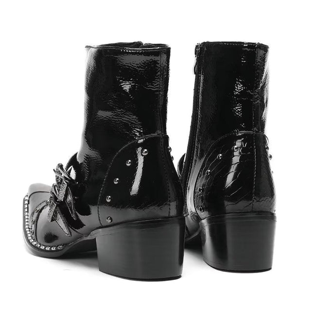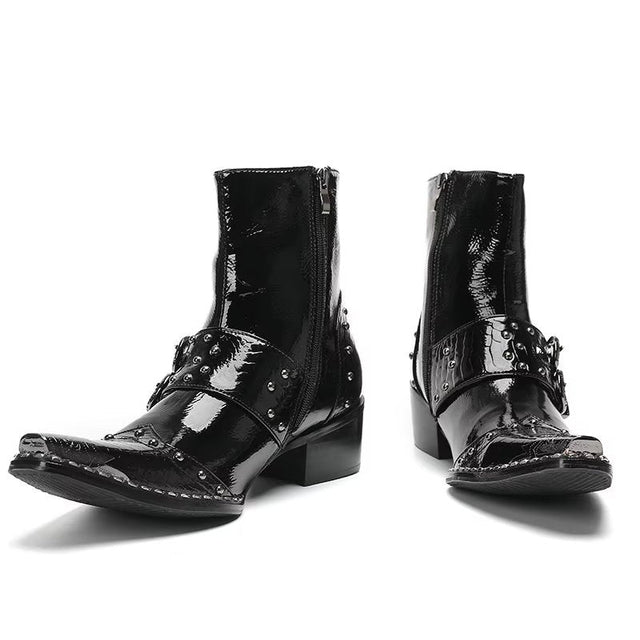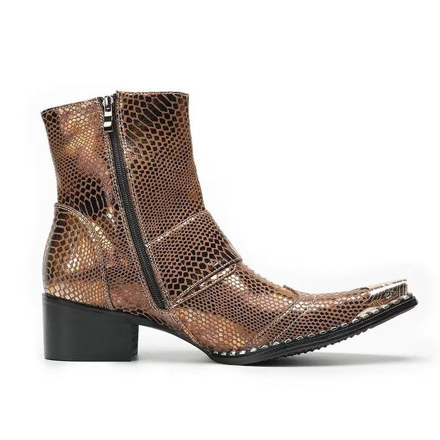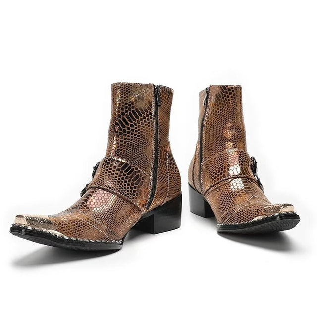 The Ebonique Crocodile Office Boots are crafted from genuine cow leather with a pigskin lining, featuring an ankle height design and a convenient zipper closure.