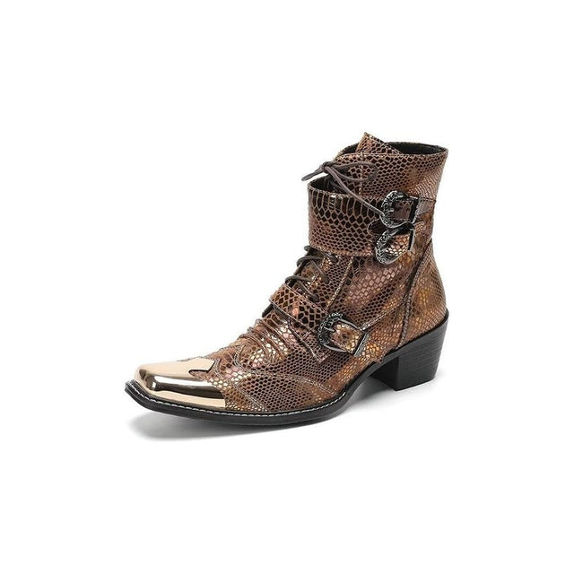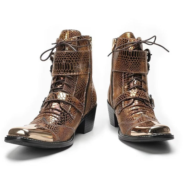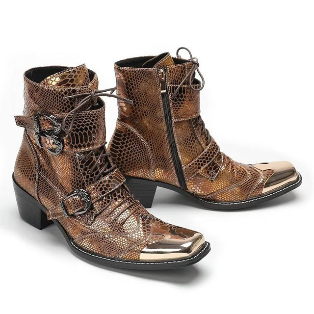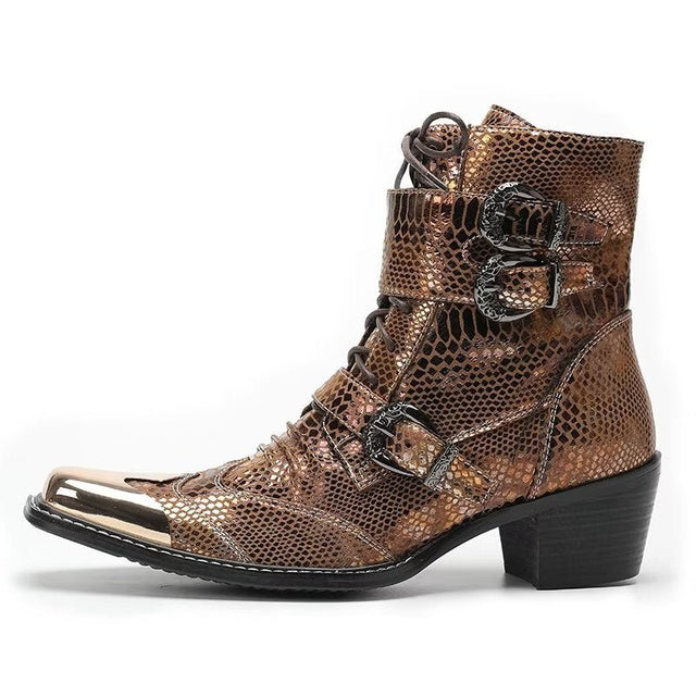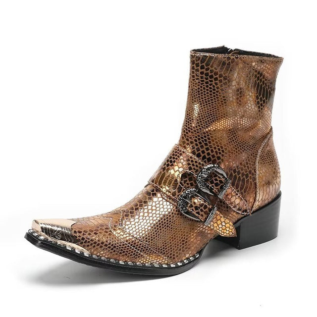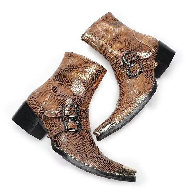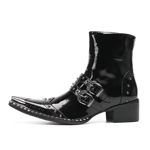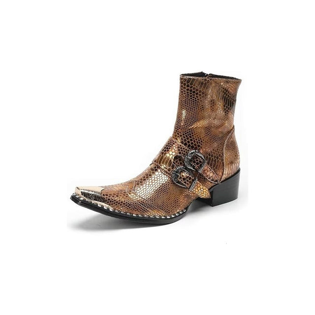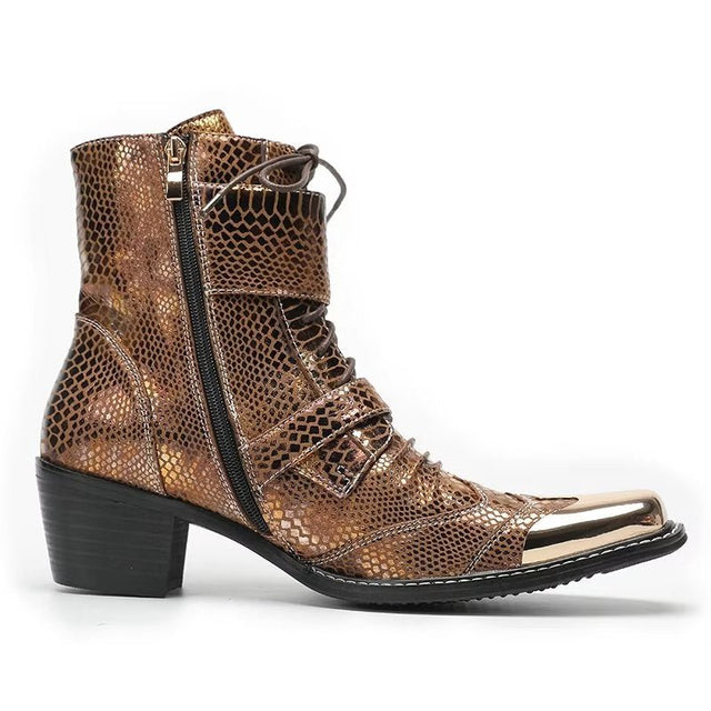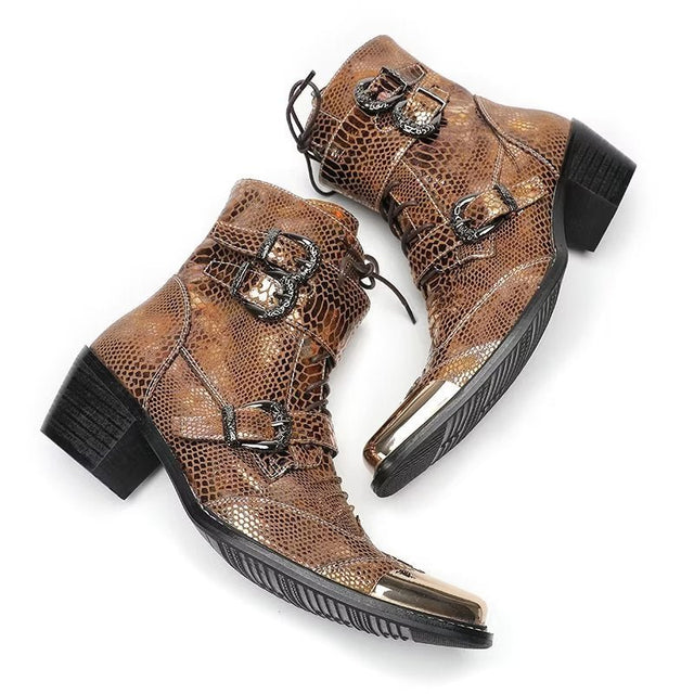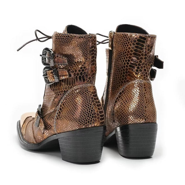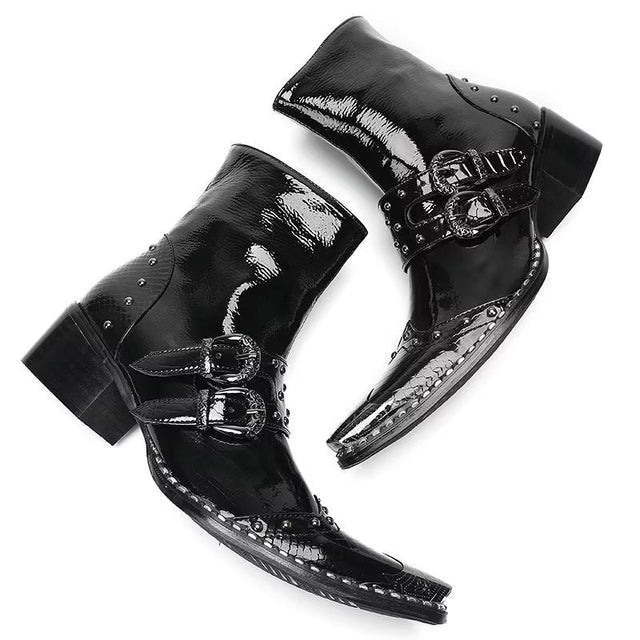 The Ebonique Crocodile Office Boots are crafted from genuine cow leather with a pigskin lining, featuring an ankle height design and a convenient zipper closure.