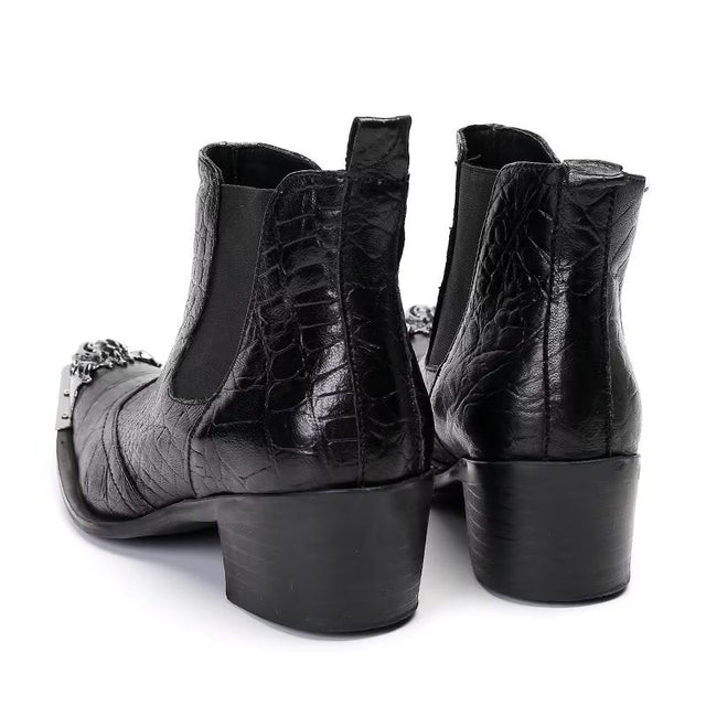 The Snakara Casual Luxe Boots feature a genuine cow leather upper and a genuine pigskin leather lining, offering durability and comfort. These ankle-height boots are designed with a convenient slip-on closure for easy wear.