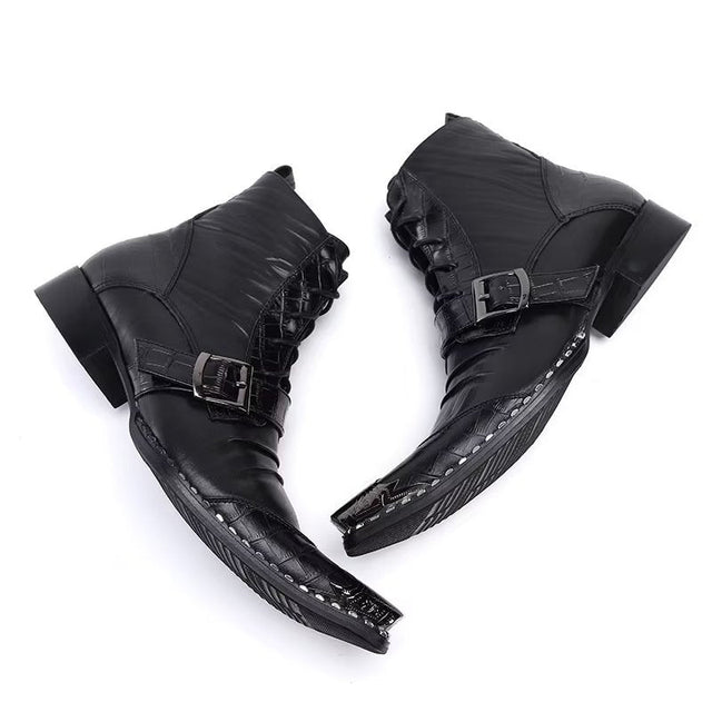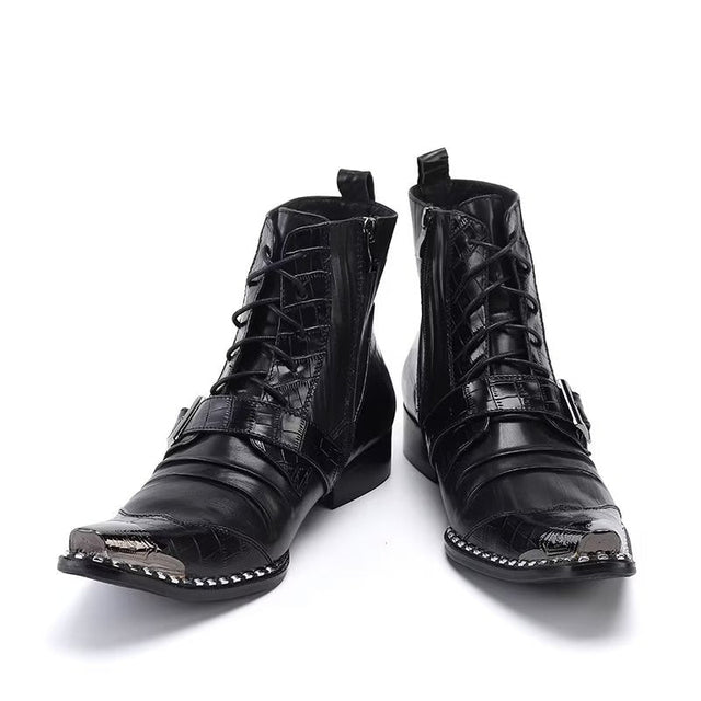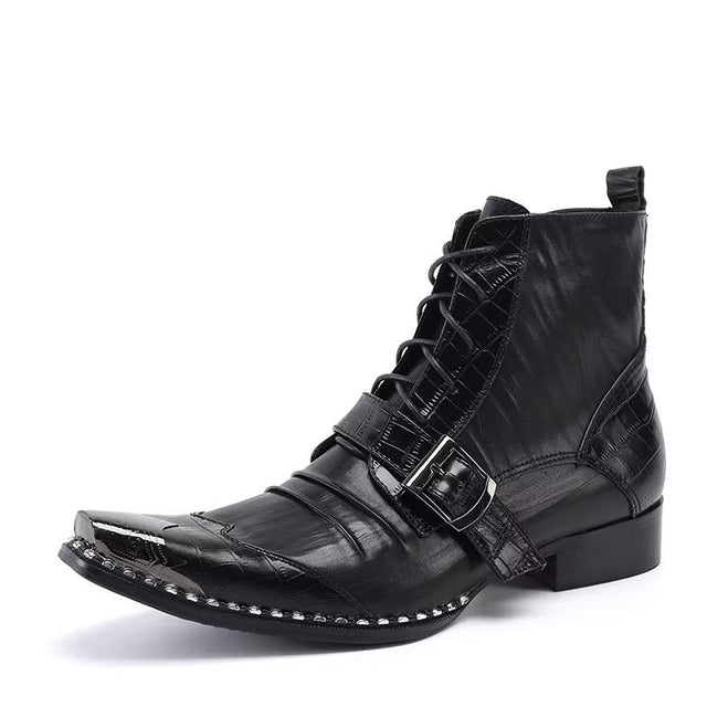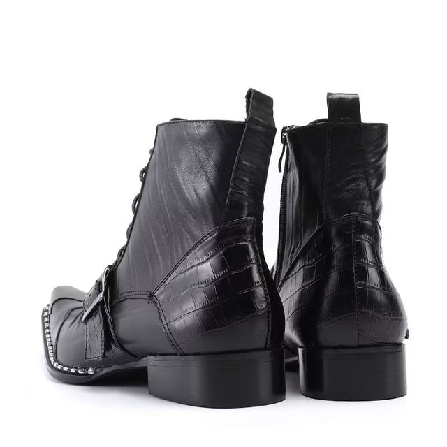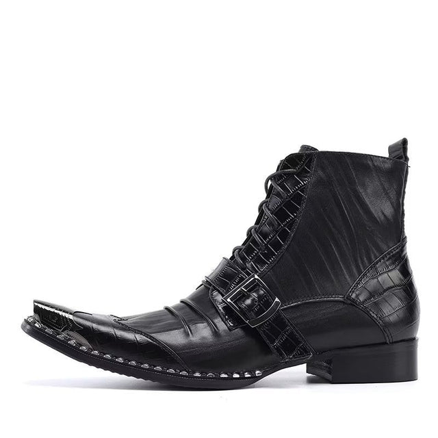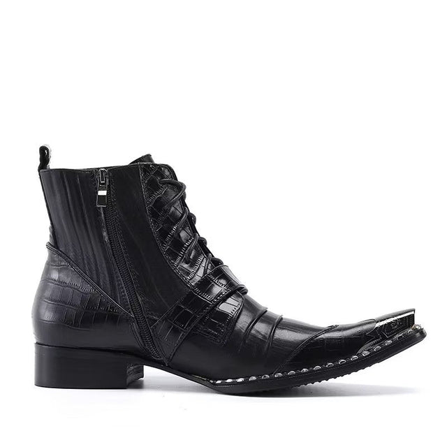 The Luxe Serpatura Executive Ankle Boots feature a genuine cow leather upper and a genuine pigskin leather lining, with a convenient zipper closure and a stylish pointed toe design.