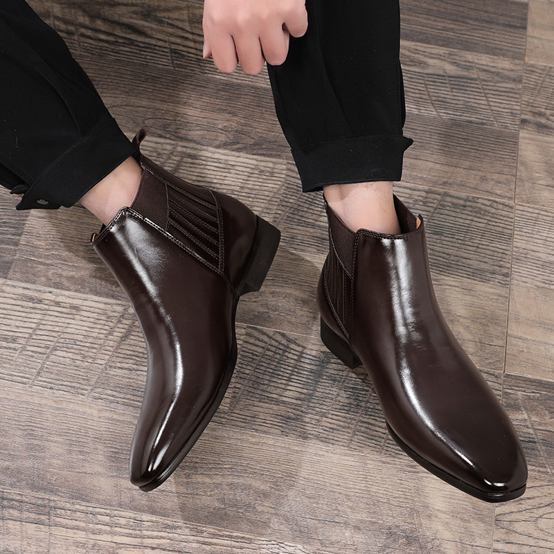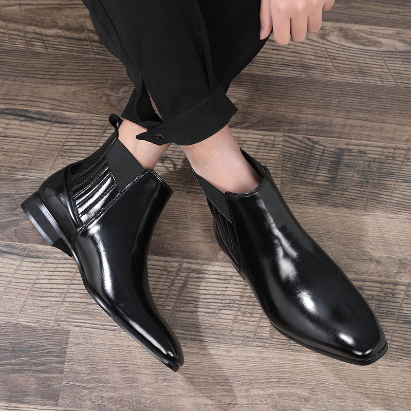 The Opulessa Veltique Dress Boots are crafted from split leather with a solid pattern, featuring an ankle height and a low heel measuring approximately 0.4 to 1.2 inches. They have a convenient zip closure and fit true to size, ensuring comfort and style for any occasion.