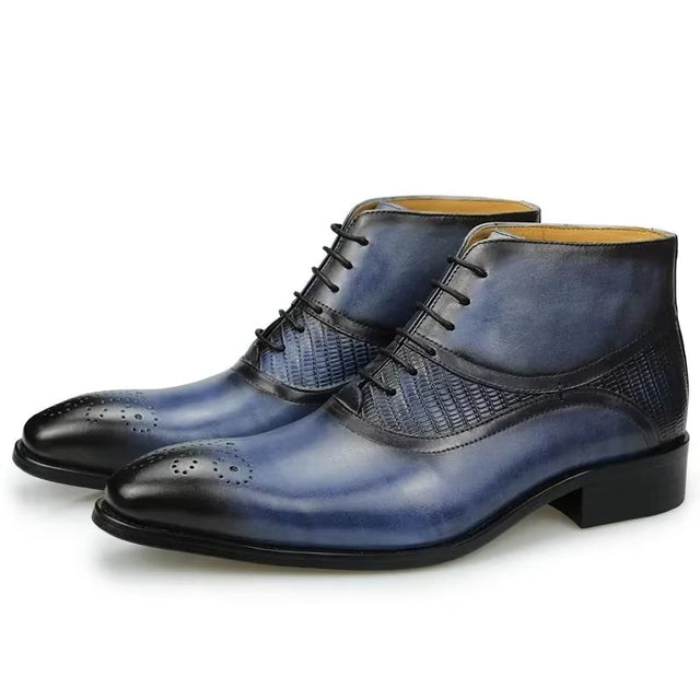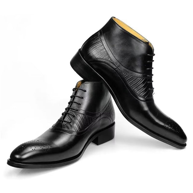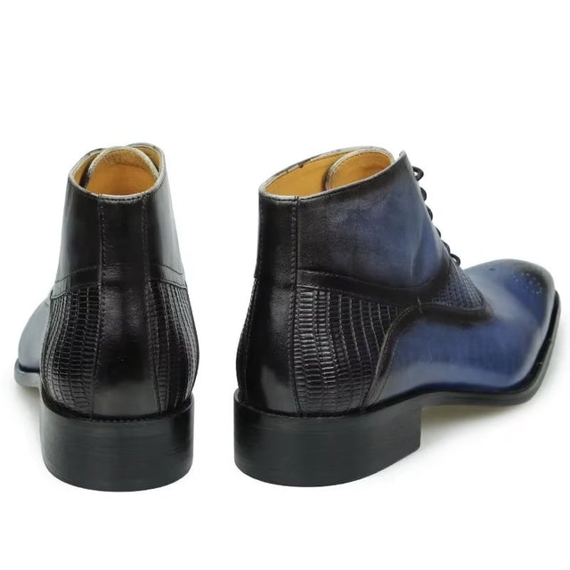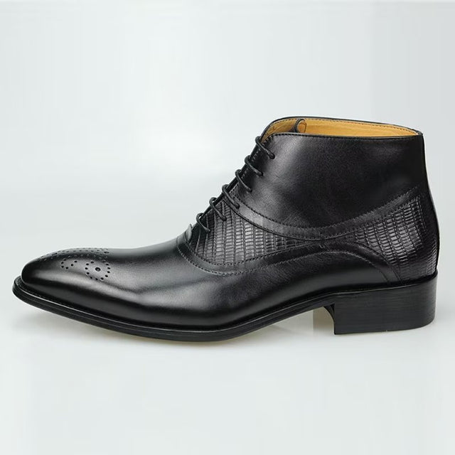 The Snakara Luxe Lace Boots are crafted from genuine cow leather, featuring an ankle-height design with a lace-up closure for a secure fit.