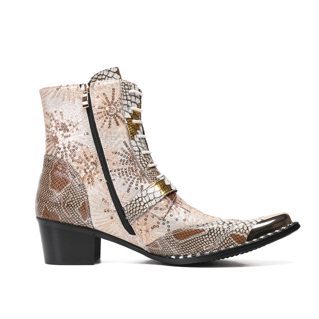 The Royvane Executive Zippered Boots are crafted from genuine cow leather with a genuine pigskin leather lining, featuring an ankle-height design and a convenient zipper closure.