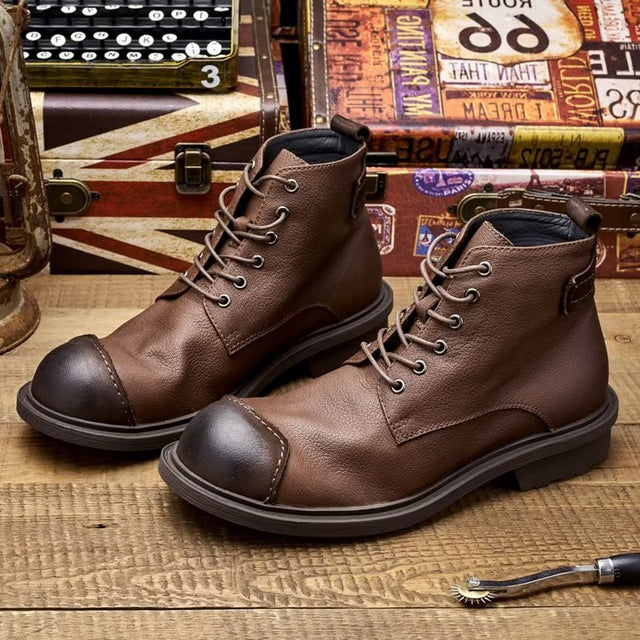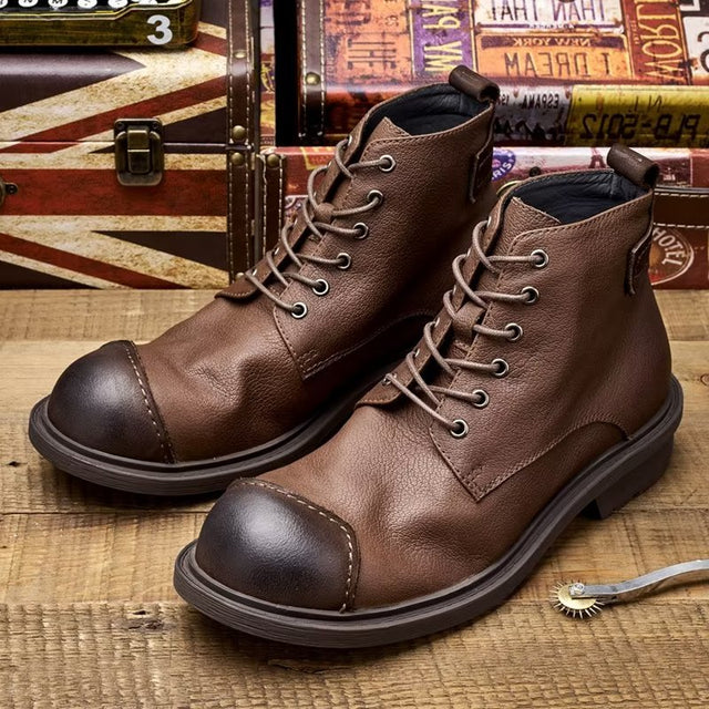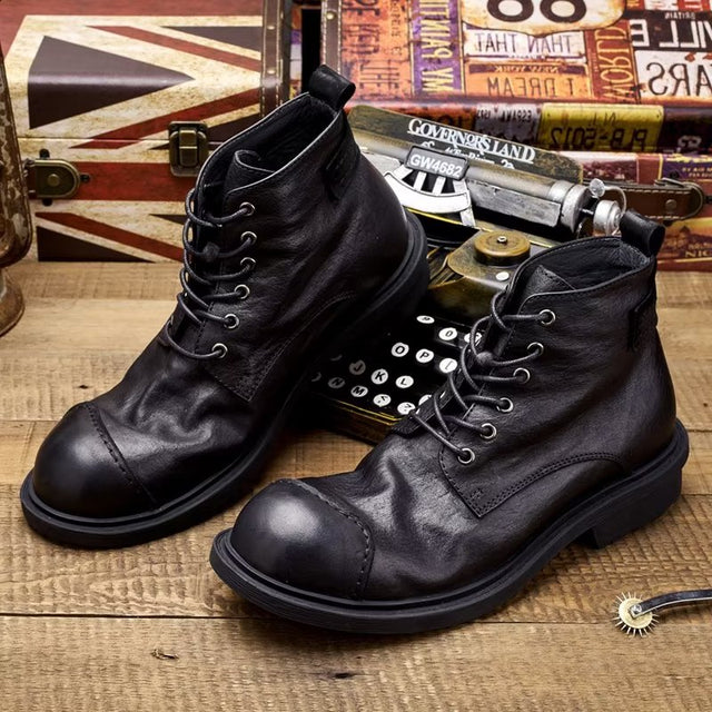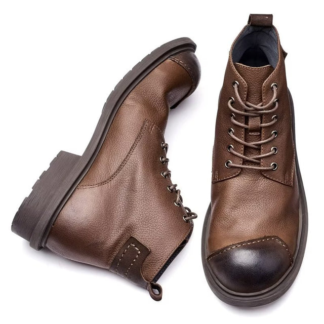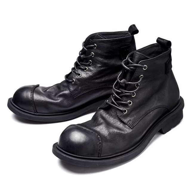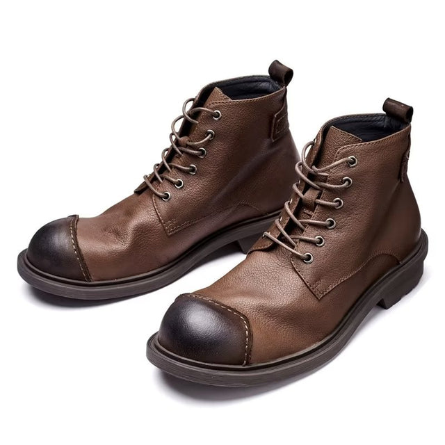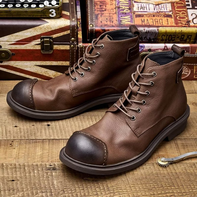 The Ostranuxe Elegance Lace-Up Boots are crafted from genuine leather for the upper, shaft, and lining, featuring a solid pattern and a rubber outsole. These ankle-height dress boots have a low heel measuring approximately 0.4 to 1.2 inches and a round toe design, secured with a lace-up closure for a leisure style.