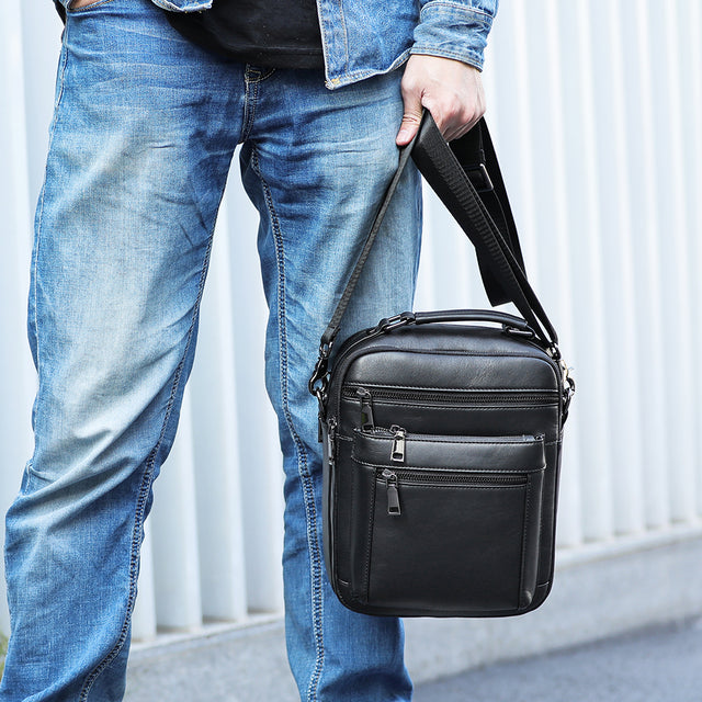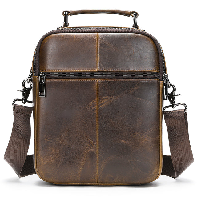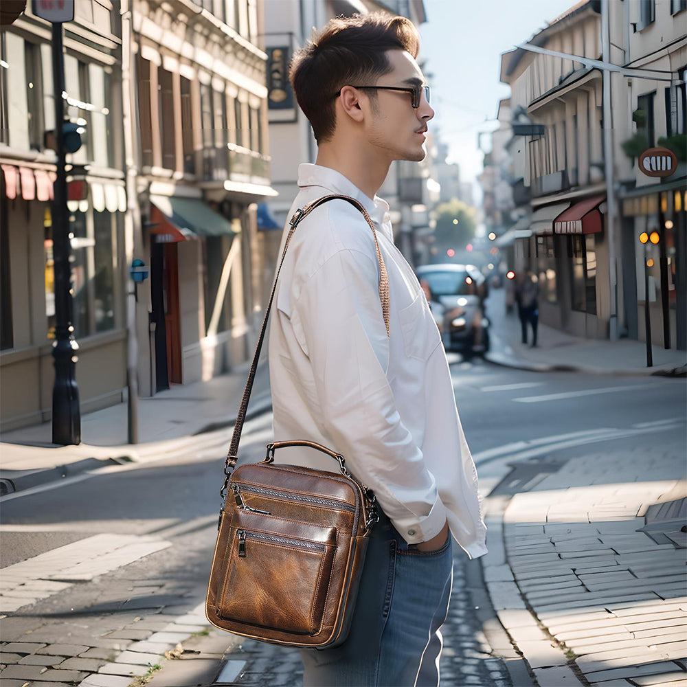The Luxalon Glacienne Carryall is a soft messenger bag crafted from genuine leather with a solid pattern and a secure zipper closure. Inside, it features an interior slot pocket, a cell phone pocket, an interior zipper pocket, an interior key chain holder, and an interior compartment for organized storage.