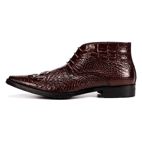 The Opulessa Snakara Dress Boots are ankle-high boots crafted from PU material, featuring a low heel height of approximately 0.4 to 1.2 inches. They have a lace-up closure and a round toe design, with a rubber outsole, making them ideal for spring and autumn wear.