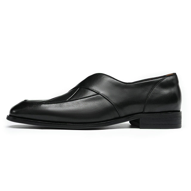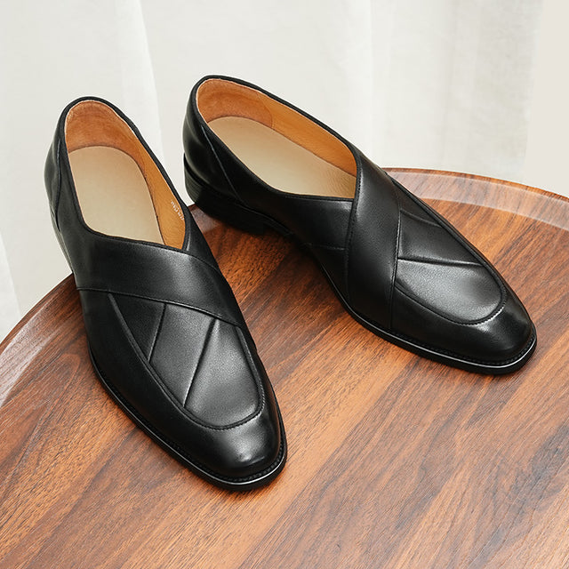 The Celestova Elegance Leather Slip Loafers feature a genuine leather upper with a solid pattern and a convenient slip-on closure, making them ideal dress shoes for formal occasions.