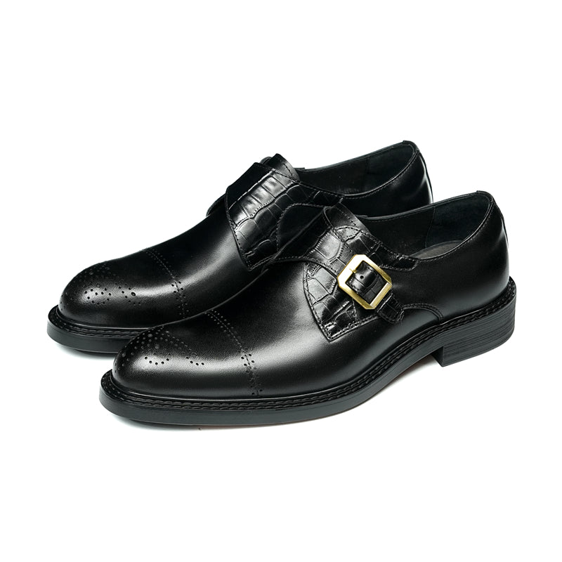 The Opulessa Everyday Buckle Brogue Shoes are crafted from genuine cow leather with a cow leather lining, featuring a pointed toe design and a buckle closure for a classic yet functional style.
