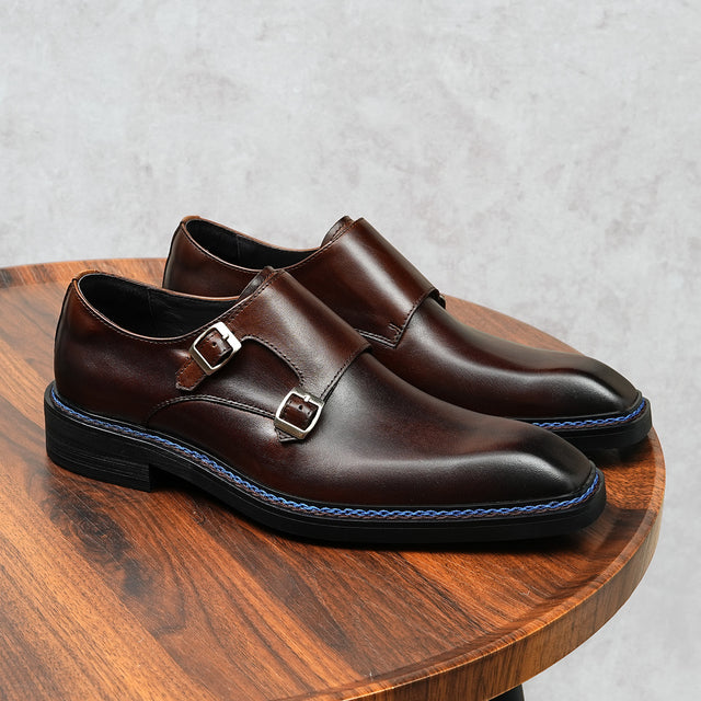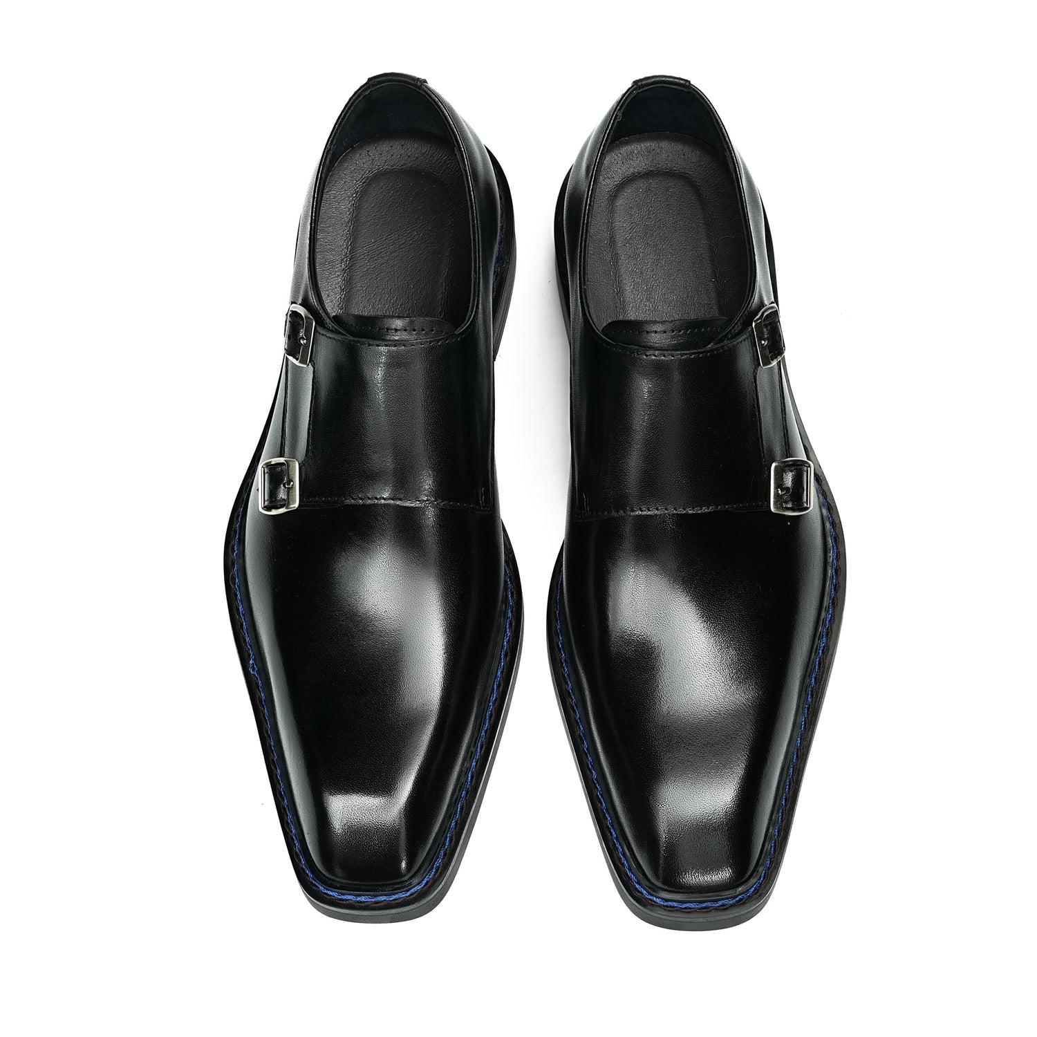 The Ostranuxe Formal Monk Footwear features a genuine leather upper with a buckle strap closure and a square toe design, making it ideal for casual business settings in spring and autumn. The shoes fit true to size, so you can confidently select your normal size.