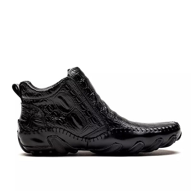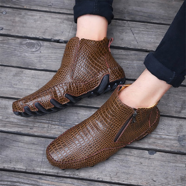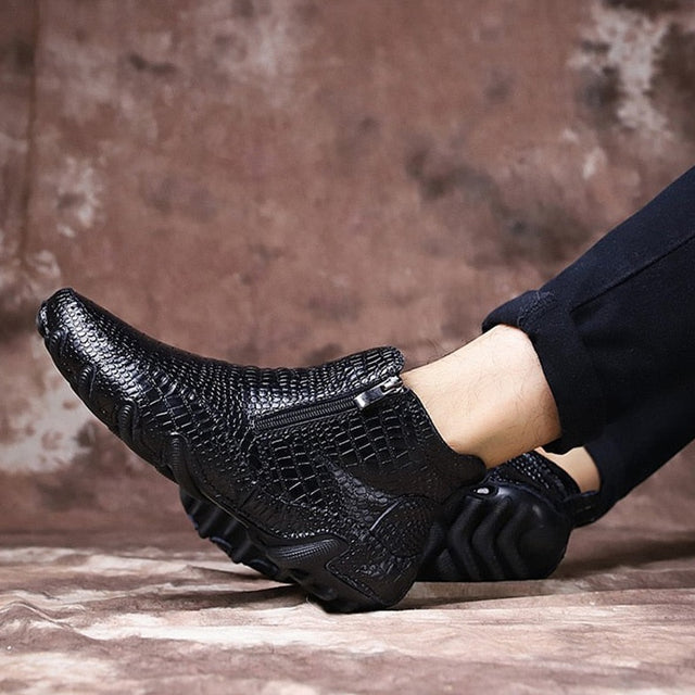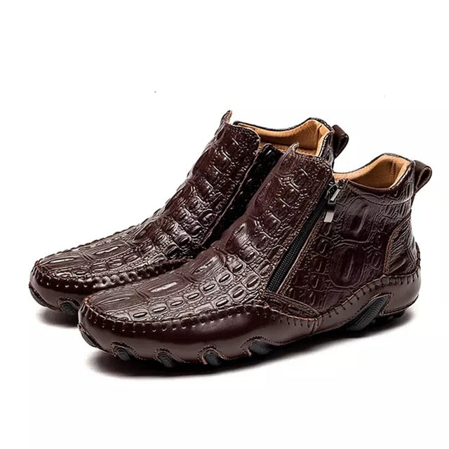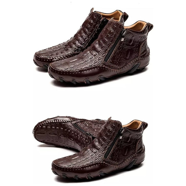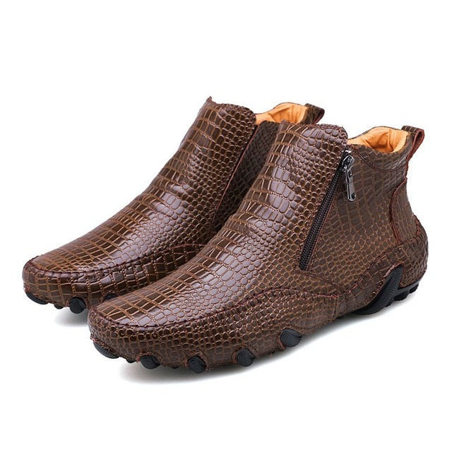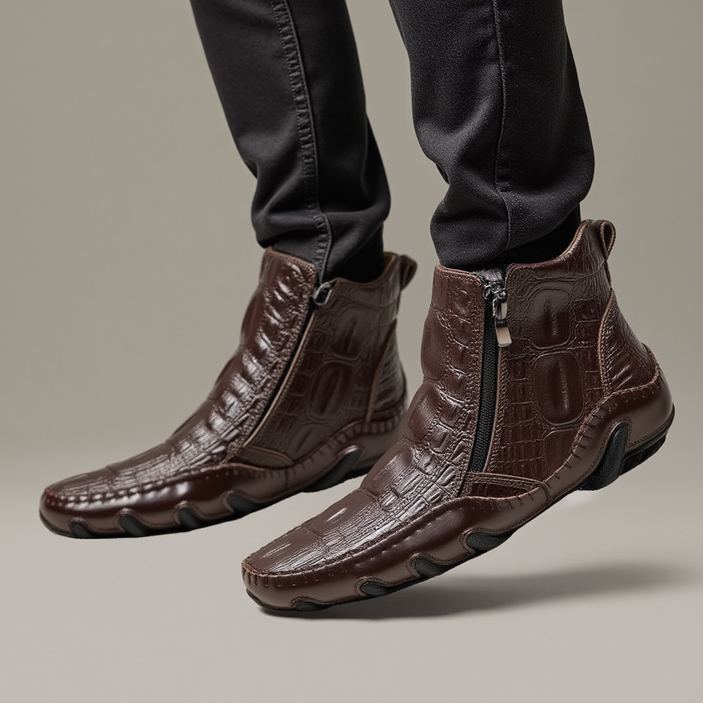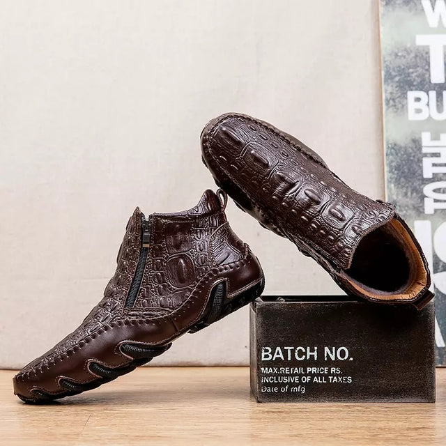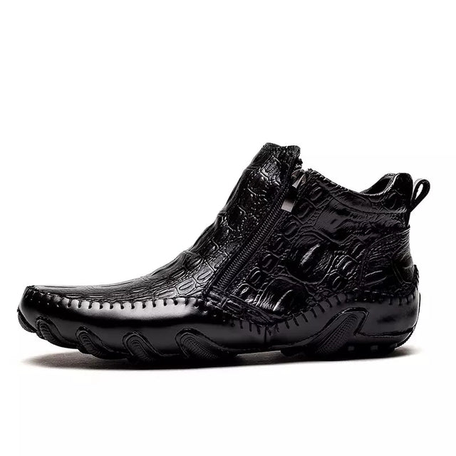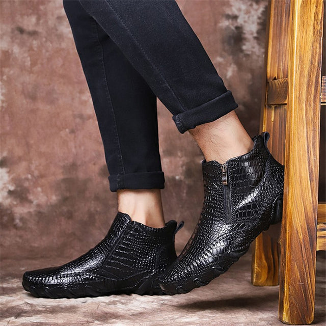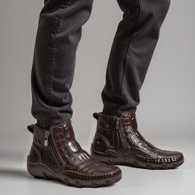 The Ostranuxe Event Ankle Boots are crafted from genuine cow leather, featuring a round toe design and a convenient zip closure, with a short plush lining for added comfort.