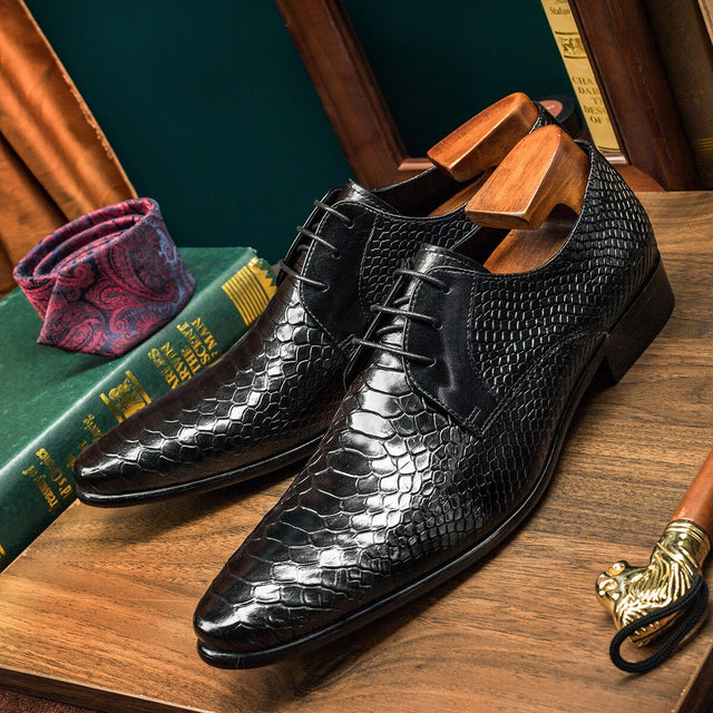 The Diamoré Wedding Croctex Oxfords are crafted from genuine cow leather, featuring a solid pattern and a classic brogue design. These shoes have a pointed toe and a lace-up closure, with a durable rubber outsole for reliable traction.