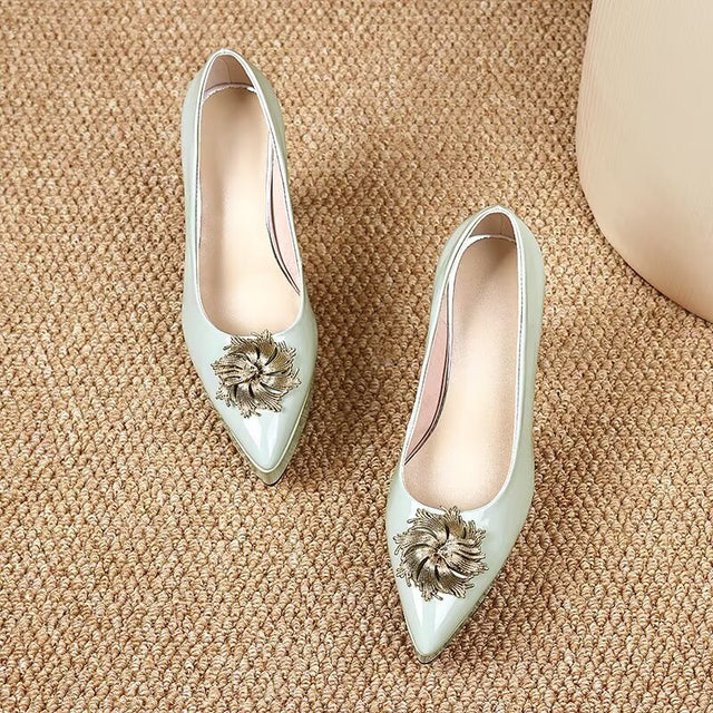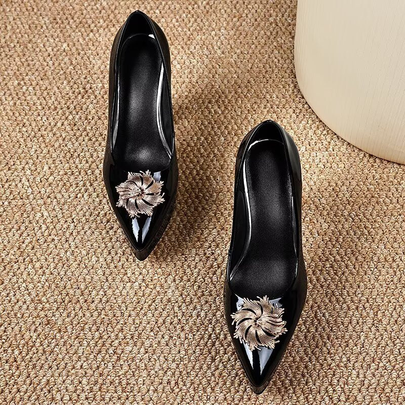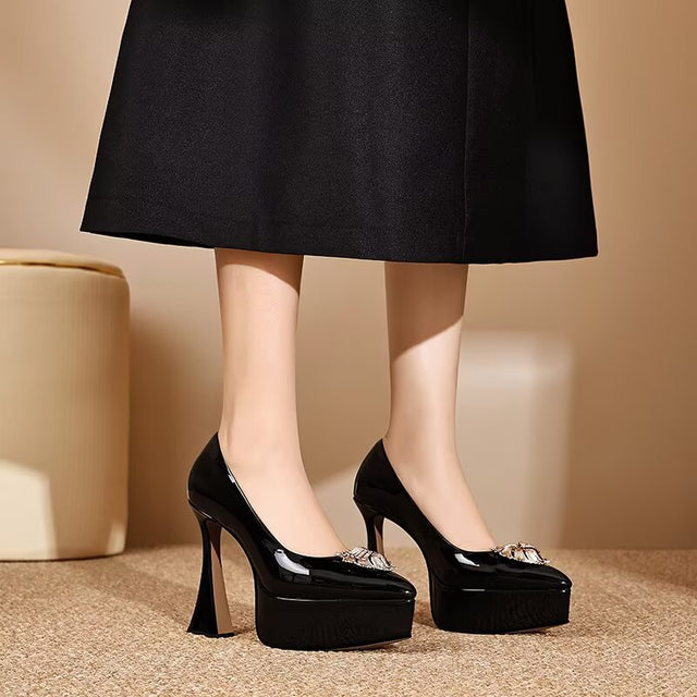 The Luminovo Glimmer Heels feature a smooth cow leather exterior and a luxurious pigskin insole, elegantly elevated by a 4.72-inch heel, all set on a durable rubber outsole for a sophisticated stride.