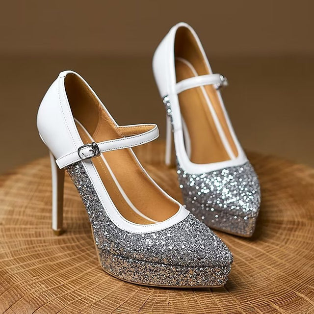 The Opulessa Signature Occasion Pumps feature a cow leather upper and sheepskin lining, with a solid pattern and a rubber outsole. Designed with a 4.7-inch thick heel and a platform, these pumps have a T-strap closure and a round toe, making them ideal for summer occasions.