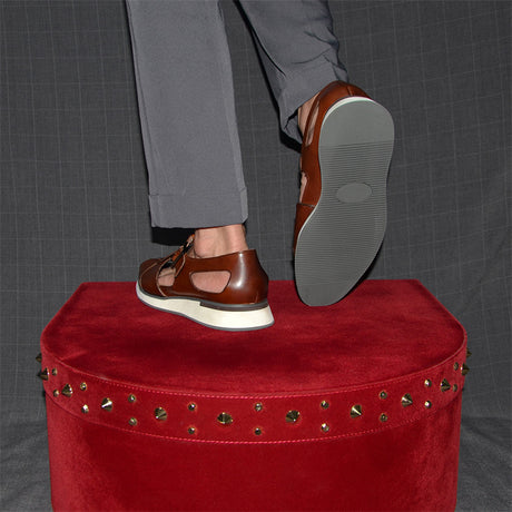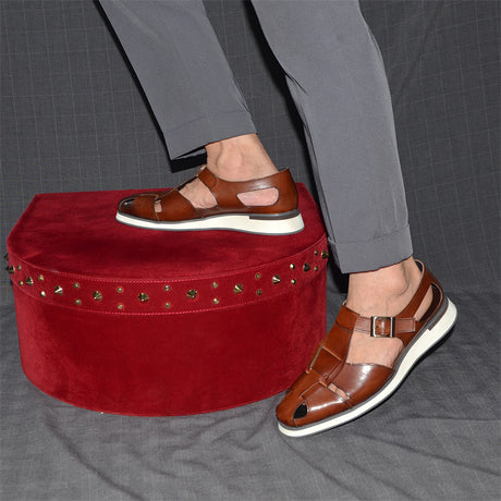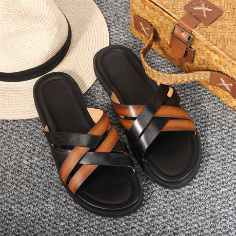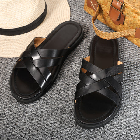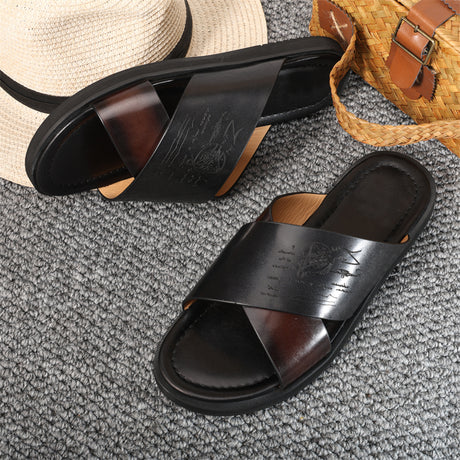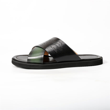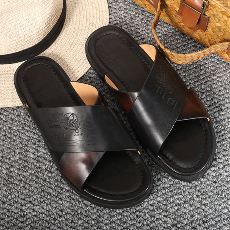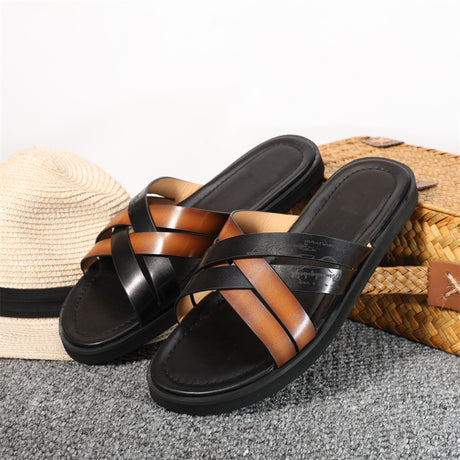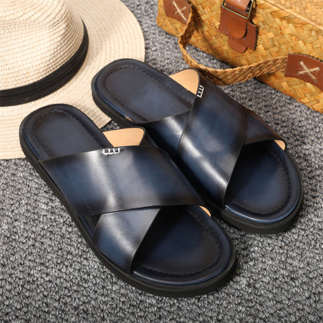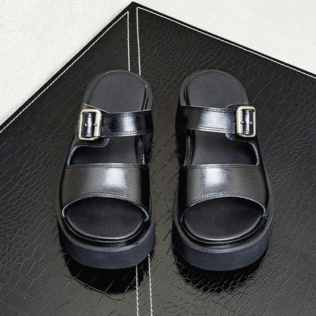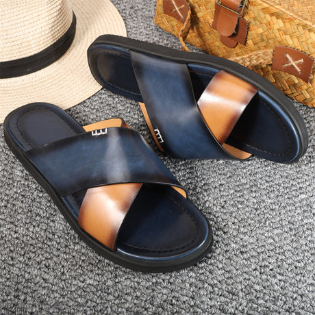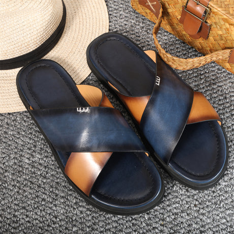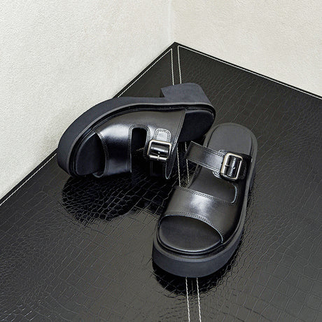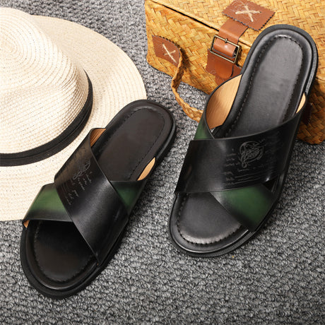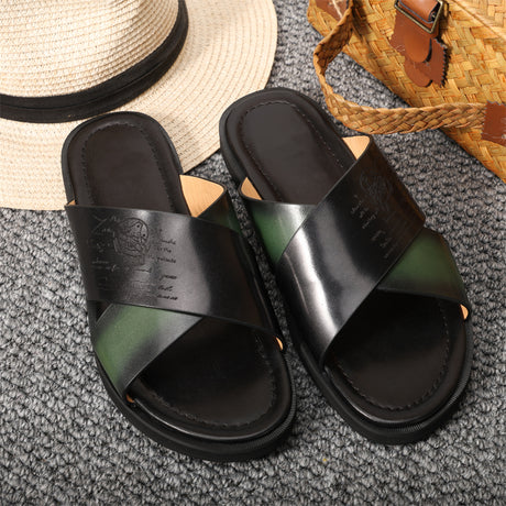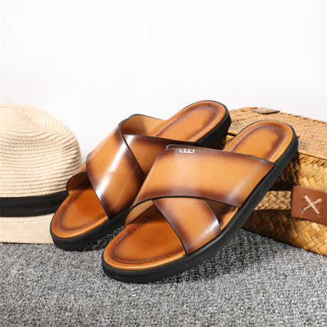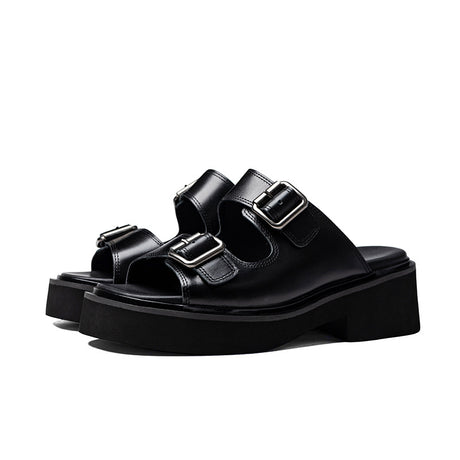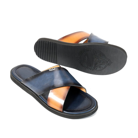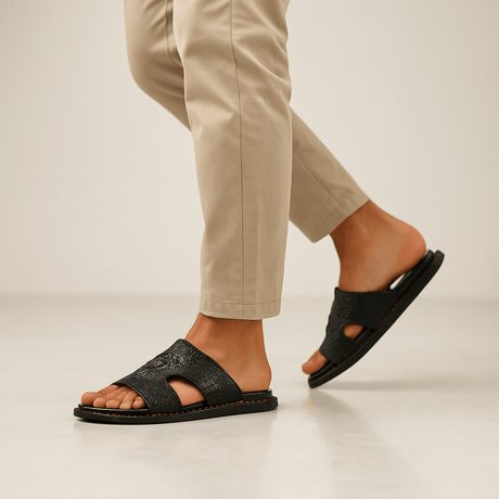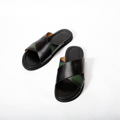 The Opulessa Croctex Slip Sandals feature a genuine leather upper made from first layer cow leather, complemented by a genuine pigskin lining. Designed with a peep toe and a slip-on closure, these sandals have a rubber outsole and a full grain leather insole, with a heel height of approximately 0.8 inches.