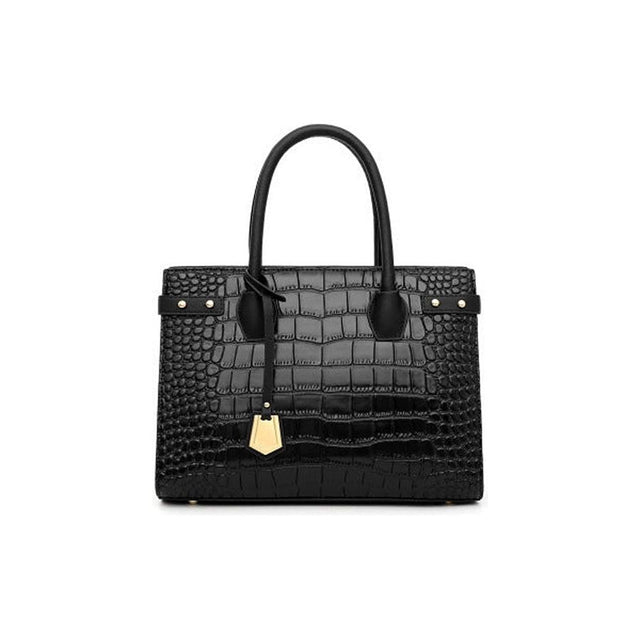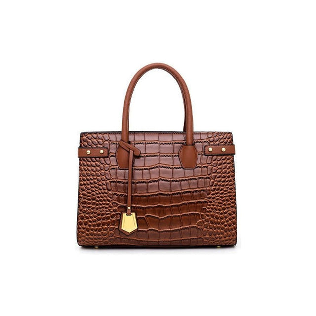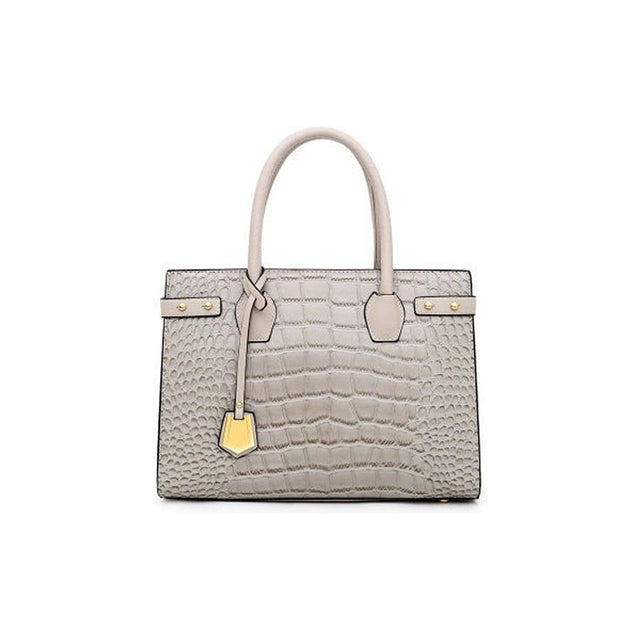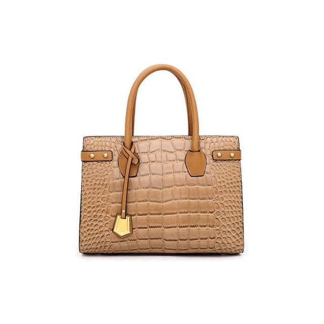 The Veltique Exotic Tote is a satchel-shaped bag crafted from durable PU material, featuring a secure zipper closure and a polyester lining for added resilience.