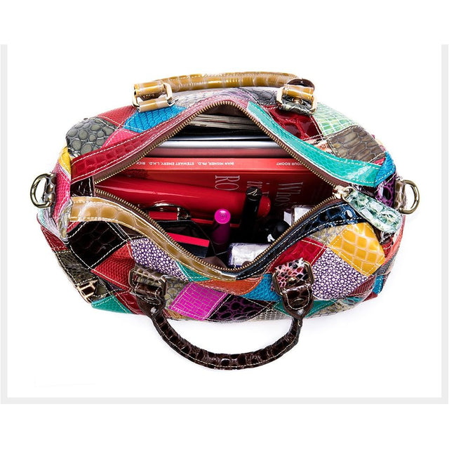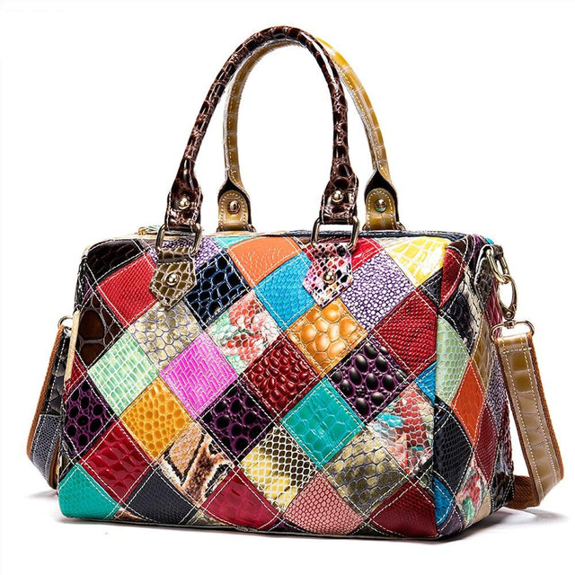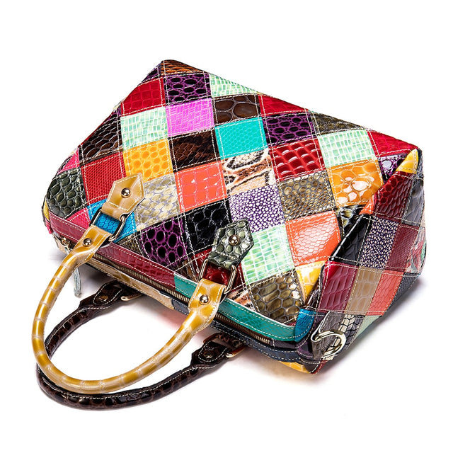 The Diamoré Signature Crossbody Flair is crafted from genuine leather with a solid pattern and features a secure zipper closure. Its casual tote shape includes a polyester lining and offers practical interior features such as a slot pocket, cell phone pocket, zipper pocket, and key chain holder.