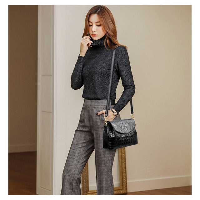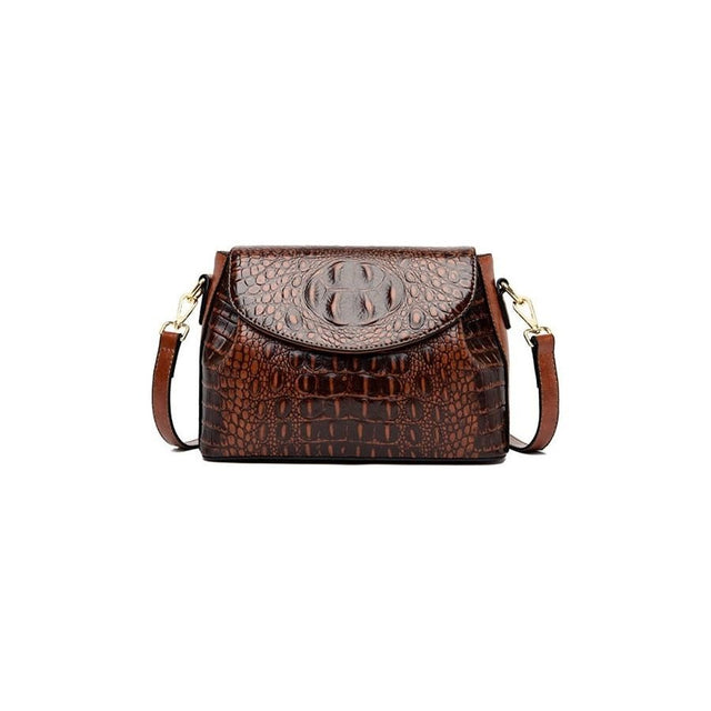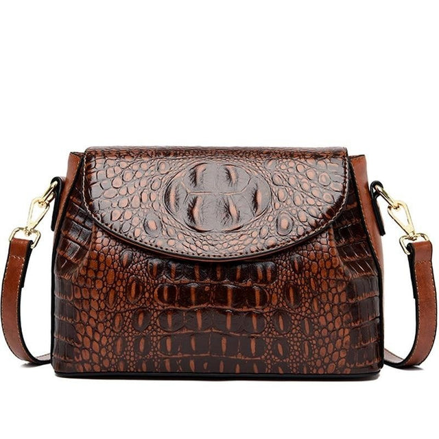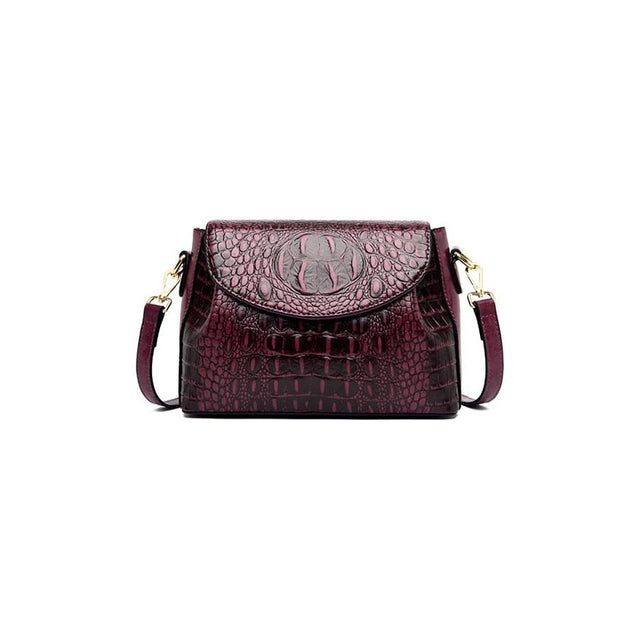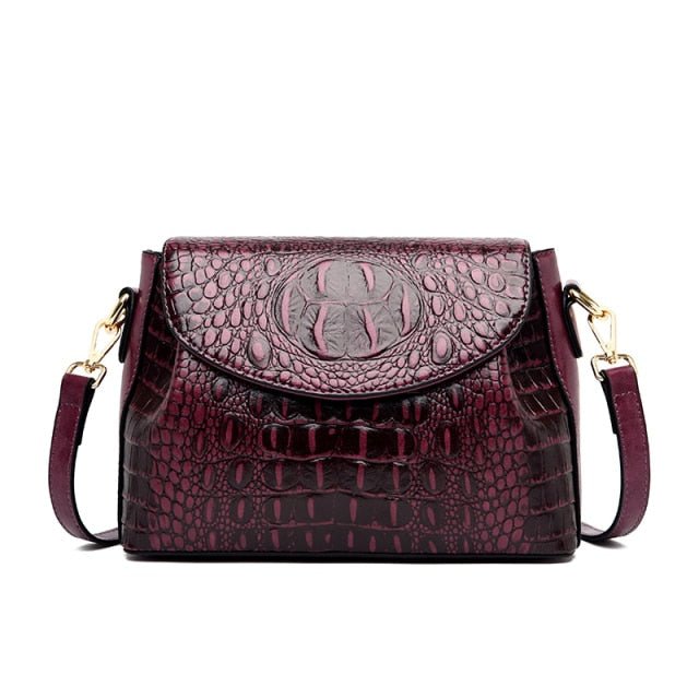 The Sovante Exotic Crossbody Bag is crafted from genuine cow leather with a crocodile pattern, featuring a secure zipper and hasp closure. It measures approximately 10 inches in length, 3.7 inches in width, and 7 inches in height, and weighs 0.68 kg.