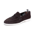 The Luxalon Slip-On Loafers are crafted from genuine cow leather with a breathable and waterproof design, featuring a rubber outsole and a pigskin insole for comfort, and they fit true to size.