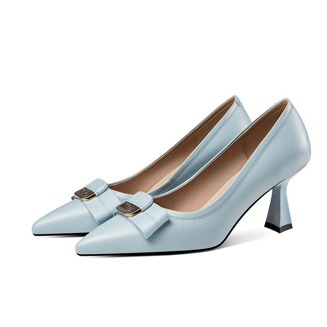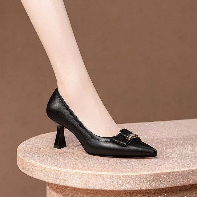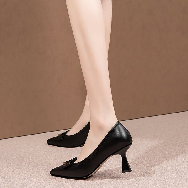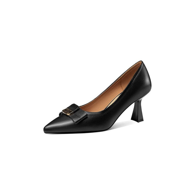 The Velvoura Veltique Slip Heels feature a pointed toe design with a 2.75-inch heel, crafted from genuine cow leather for the upper and cowhide for the insole, while the lining is made of genuine pigskin leather. The rubber outsole ensures durability, and the slip-on closure offers convenience, fitting true to size.
